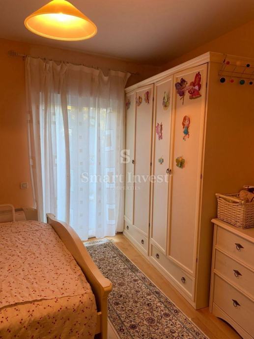 Sastoji se od dnevnog boravka, kuhinje, blagovaonice, 2 spavaće sobe, ureda u kojem je dodatni ležaj, kupaonice, gostinskog WC-a. Stan ima prostranu terasu površine 45 m2, i saunu s tušem.
