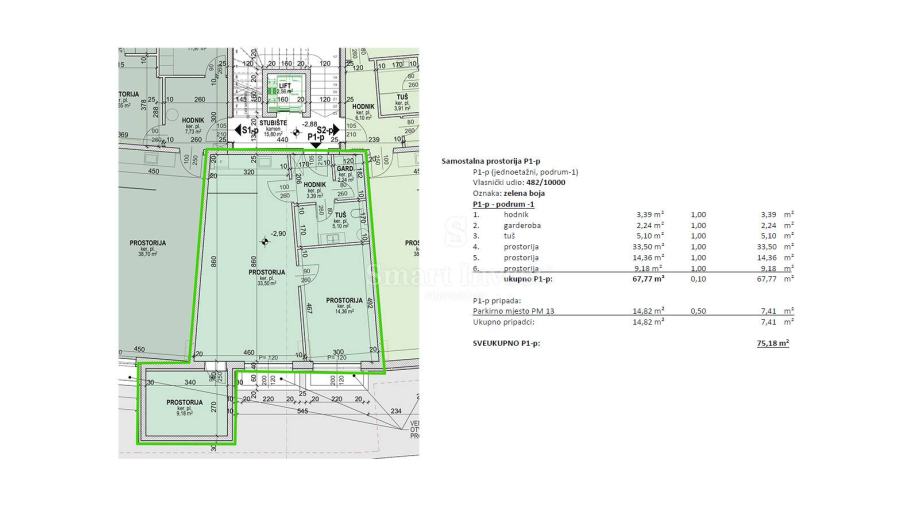 • 1 garažno parkirno mjesto PM13 od 14.82 m2
