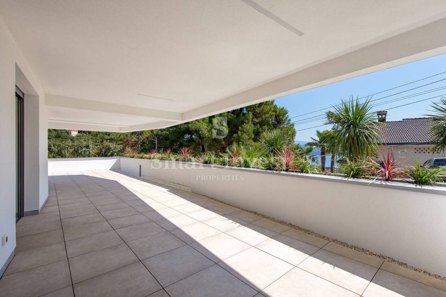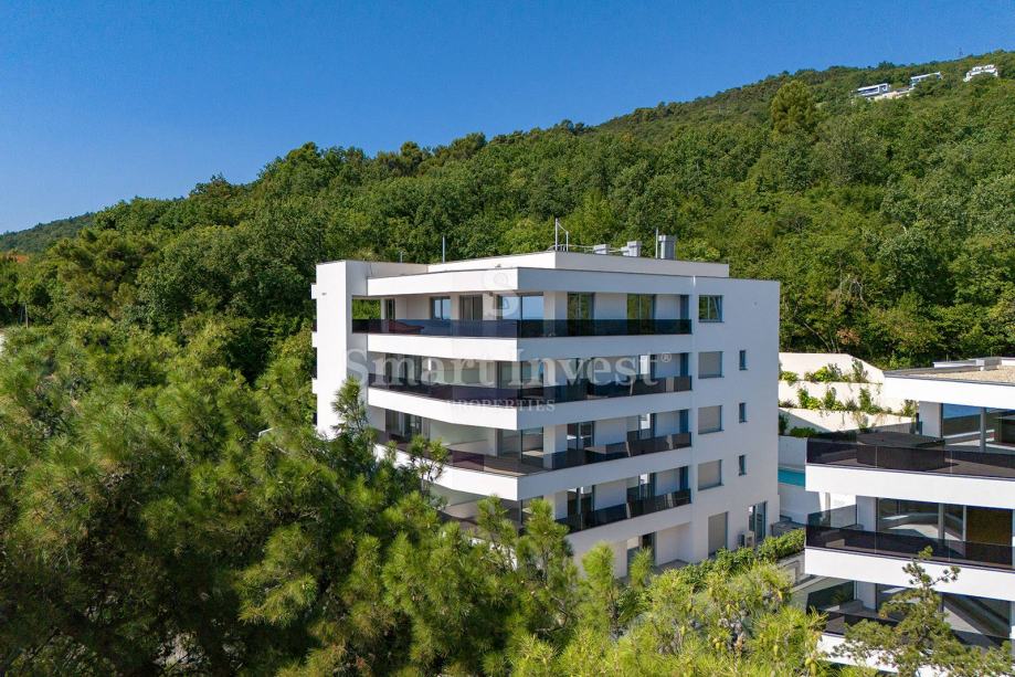 Ova vrhunska nekretnina vam pruža moderni dizajn, luksuznu eleganciju, privatnost i udobnost, te spektakularni pogled na centar Opatije i more, a svojim modernim arhitektonskim stilom i najfinijim materijalima postavlja nove standarde luksuza. Zahvaljujući položaju u mirnom dijelu Opatije, uživat ćete u osjećaju privatnosti i mira te istovremeno u zadivljujućem pogledu na centar Opatije i šarmantnu obalu Jadranskog mora.