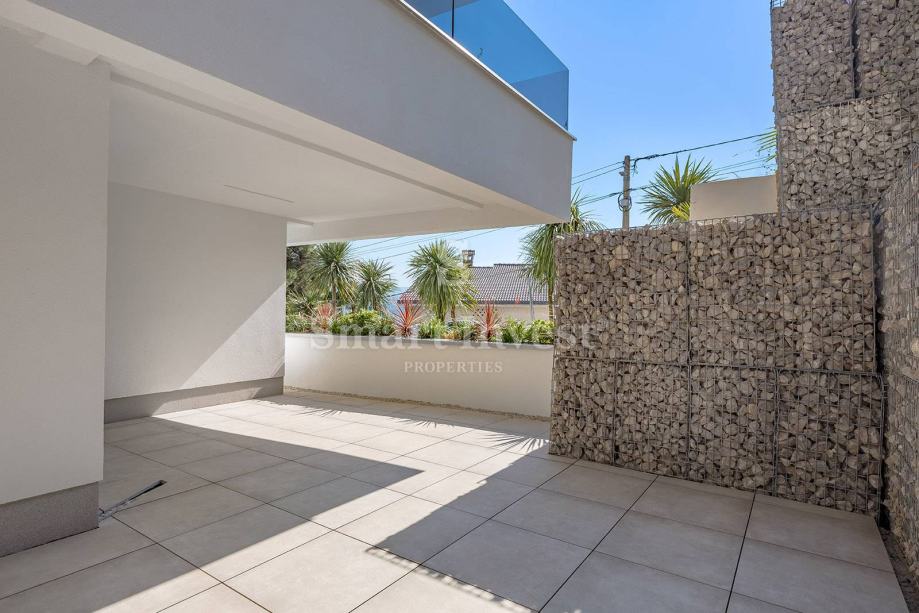 Ova vrhunska nekretnina vam pruža moderni dizajn, luksuznu eleganciju, privatnost i udobnost, te spektakularni pogled na centar Opatije i more, a svojim modernim arhitektonskim stilom i najfinijim materijalima postavlja nove standarde luksuza. Zahvaljujući položaju u mirnom dijelu Opatije, uživat ćete u osjećaju privatnosti i mira te istovremeno u zadivljujućem pogledu na centar Opatije i šarmantnu obalu Jadranskog mora.