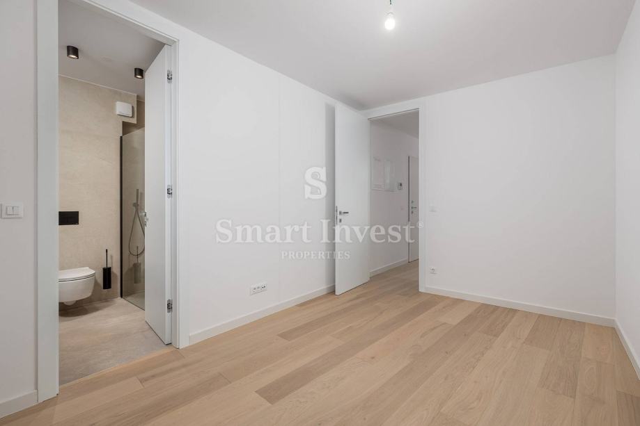 Ovaj prekrasan stan je dizajniran za maksimalnu udobnost. Na raspolaganju su vam ulazni hodnik, WC, dvije spavaće sobe s vlastitim kupaonicama, prostrani dnevni boravak s kuhinjom i blagovaonicom, te prostrana terasa - idealno mjesto za druženje s obitelji i prijateljima.