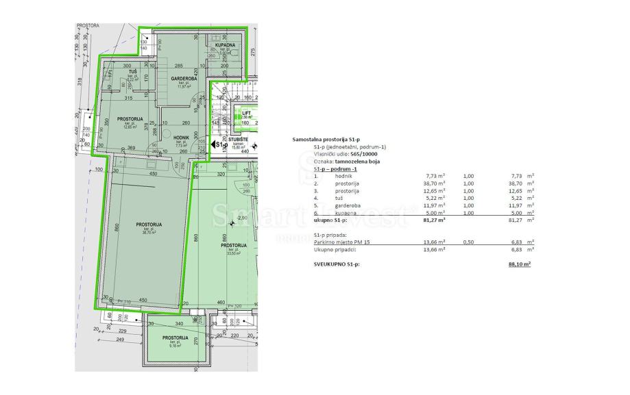 • 1 garažno parkirno mjesto PM15 od 13.66 m2
