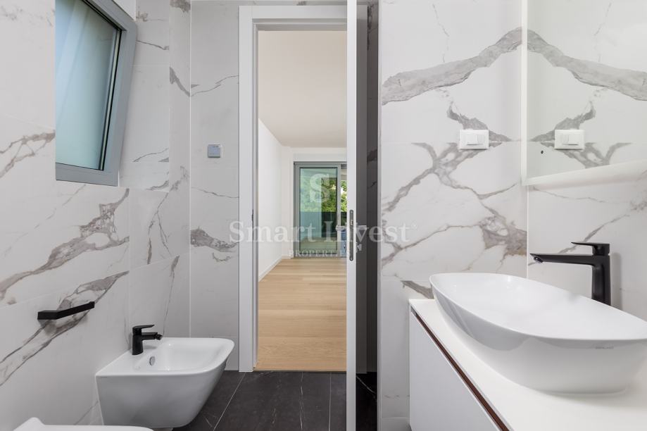 Ova vrhunska nekretnina vam pruža moderni dizajn, luksuznu eleganciju, privatnost i udobnost, te spektakularni pogled na centar Opatije i more, a svojim modernim arhitektonskim stilom i najfinijim materijalima postavlja nove standarde luksuza. Zahvaljujući položaju u mirnom dijelu Opatije, uživat ćete u osjećaju privatnosti i mira te istovremeno u zadivljujućem pogledu na centar Opatije i šarmantnu obalu Jadranskog mora.