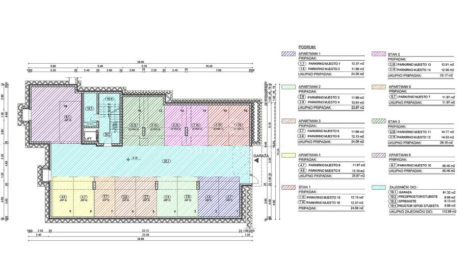 APARTMAN 2, sveukupne korisne površine 172,13 m2, smješten je u prizemlju te se sastoji od ulaznog hodnika, dnevnog boravka s kuhinjom i blagavaonicom, dvije spavaće sobe, kupaonice i natkrivenog balkona (ukupne korisne površine 80,10 m2), pripadajućeg vrta površine 68,06 m2 te 2 garažna parkirna mjesta ukupne korisne površine 23,97 m2.