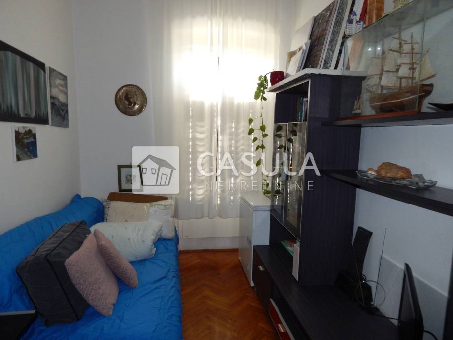 OPATIJA, stan u staroj vili na prekrasnoj lokaciji samo 50-tak m od mora. Nalazi se u prizemlju i vlasnici stana koriste dio okućnice na kojoj je smješten roštilj i parkirno mjesto. Stan se sastoji od dvije sobe, kuhinje, blagovaone, kupaonice s wc-om i predsoblja te konobe u suterenu zgrade.Pogled na more. Rijetkost u ponudi.