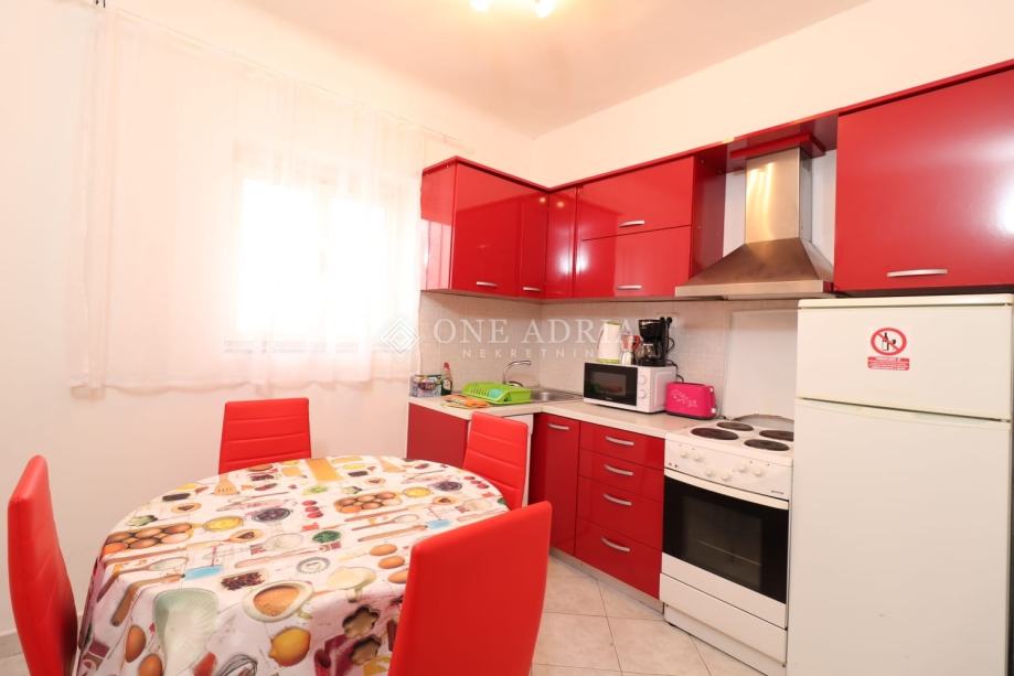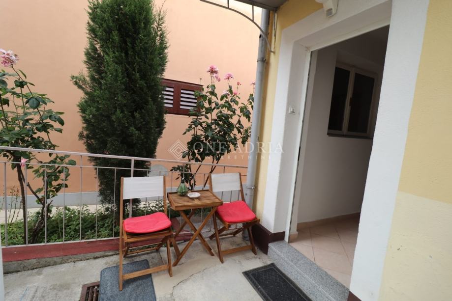 Prodaje se potpuno adaptiran i namješten jednosobni stan s dnevnim boravkom, svega 50 metara od mora. Stan površine 43 m² nalazi se na prvom katu austrougarske vile i ima poseban ulaz. Sastoji se od spavaće sobe, dnevnog boravka, kuhinje s blagovaonicom i kupaonice.
