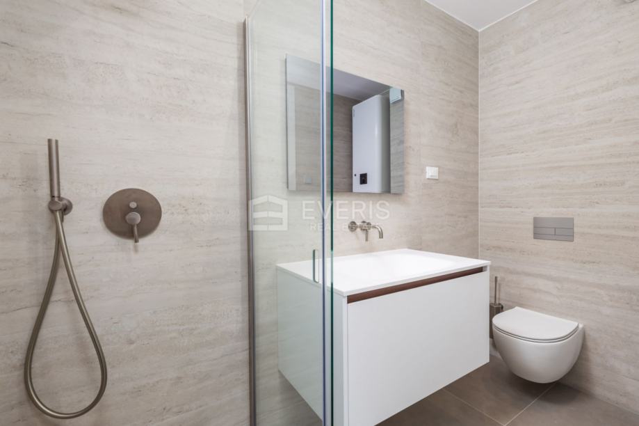 • tri prostorije, kupaonice, gtoaleta, hodnika i garderobe; unutarnja površina stana: 67,77 m2 / sveukupna površina stana: 75,92 m2.