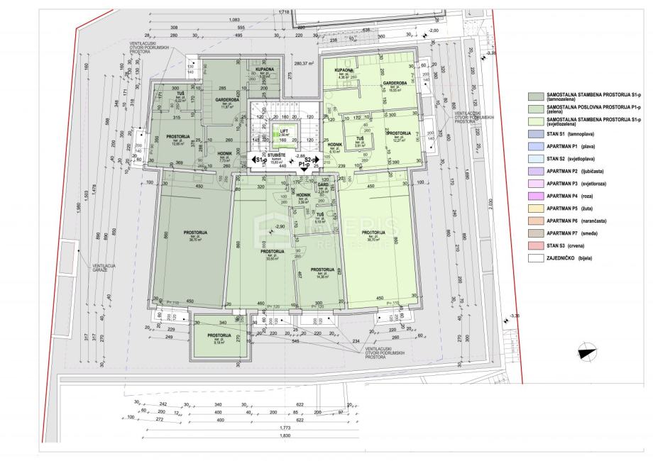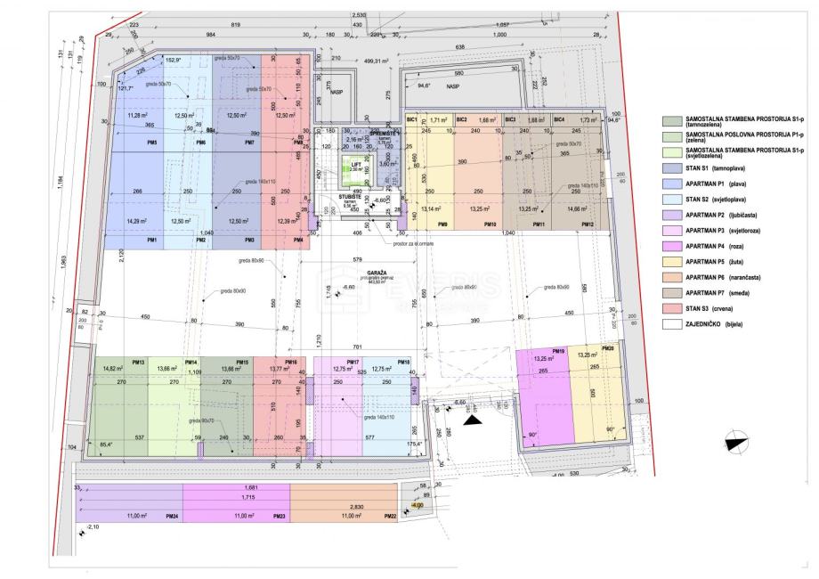 • 1jedno garažno parkirno mjesto površine 14.82 m2