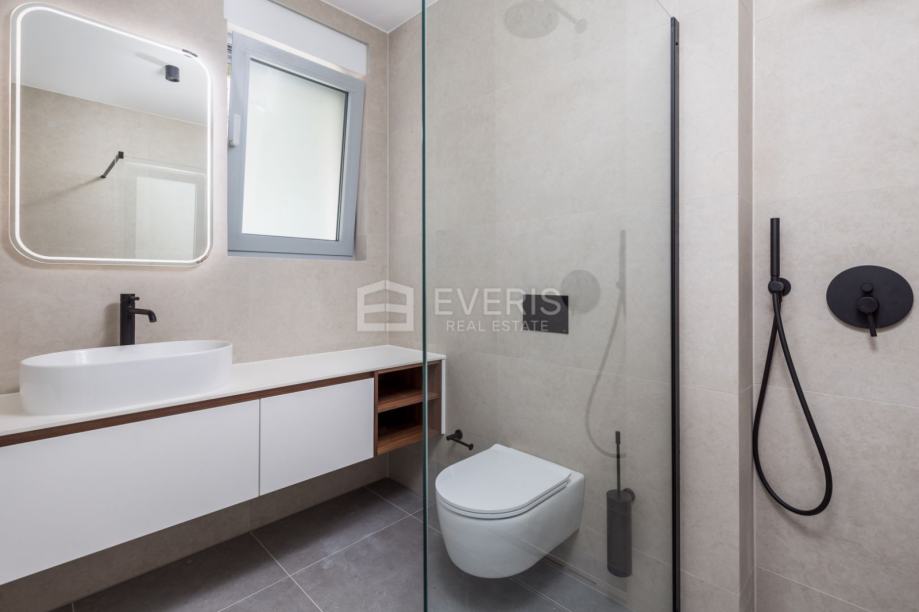 • dvije spavaće sobe, dvije kupaonice, toaleta, dnevnog boravka, kuhinje i blagovanonice; unutarnja površina stana: 81.45 m2 / sveukupna površina stana: 108.97 m2