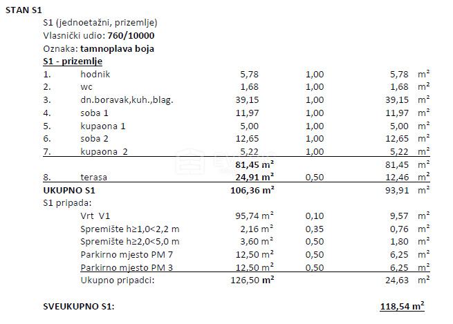• dva garažna parkirna mjesta površine svakog 12,50 m2