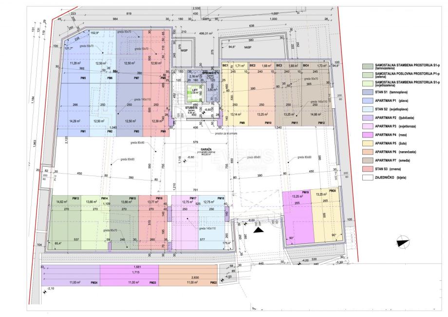 • dva garažna parkirna mjesta površine 12.50 m2 i 12.50 m2