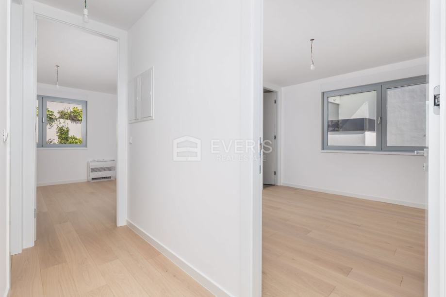 • dvije spavaće sobe, dvije kupaonice, toaleta, hodnika, kuhinje, blagovaone i dnevnog boravka; unutarnja površina stana: 82.34 m2 / ukupna površina stana: 107.41 m2.