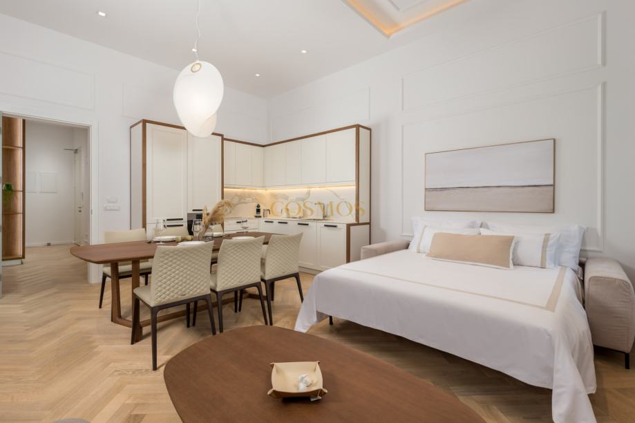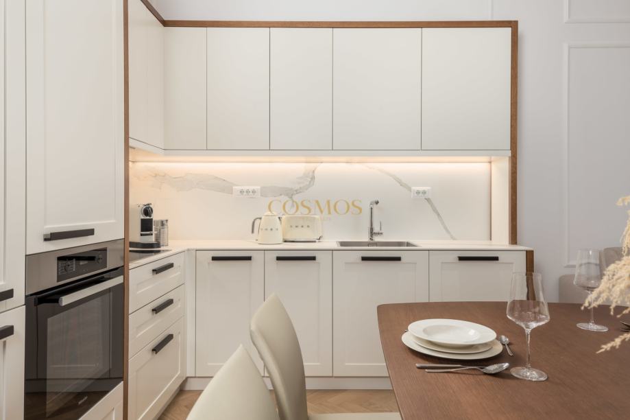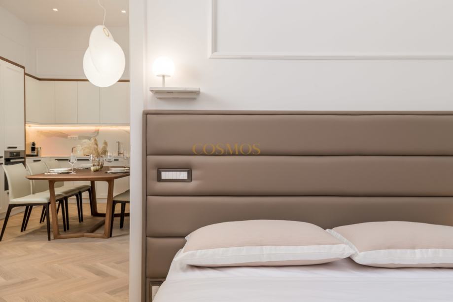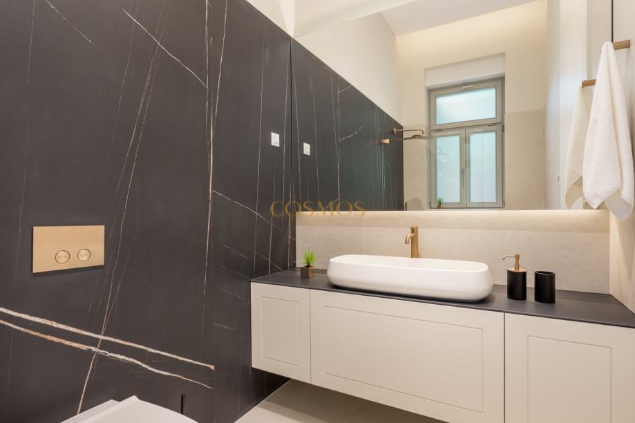 Stan se ističe svojim ekskluzivnim dizajnom i umjetničkim stilom, savršeno spajajući estetiku i funkcionalnost. Opremljen je klima uređajem, osiguravajući maksimalnu udobnost tijekom cijele godine. Protuprovalna vrata dodaju dodatni sloj sigurnosti.