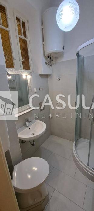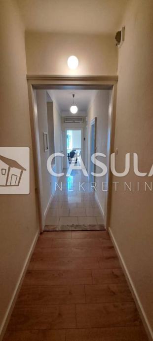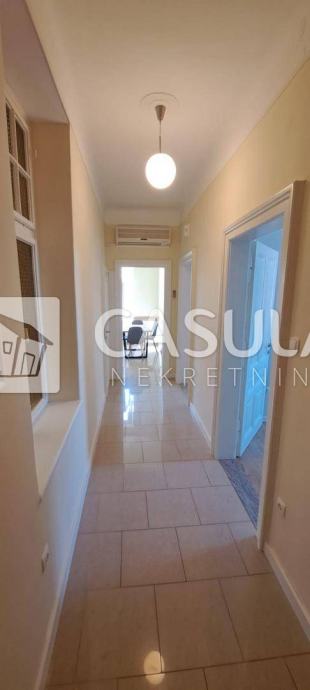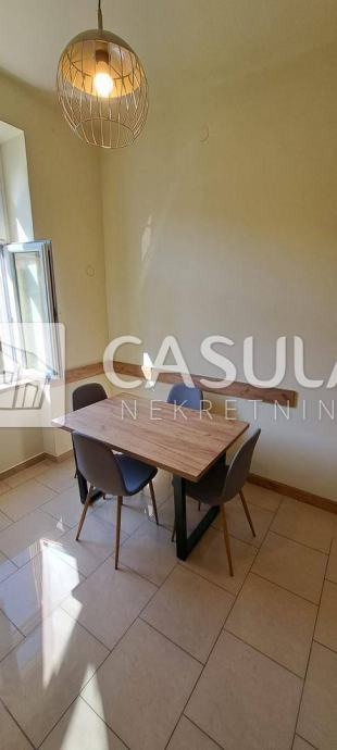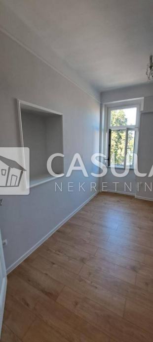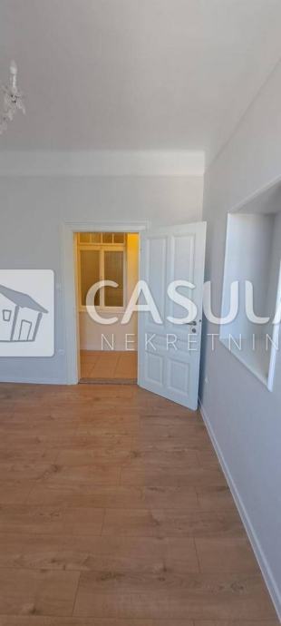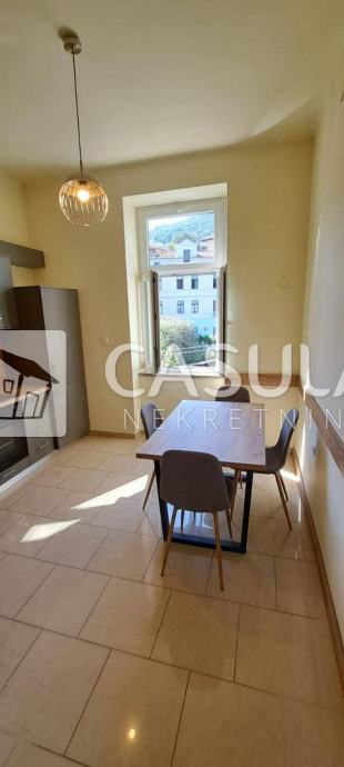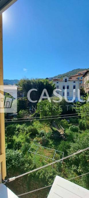 OPATIJA, centar, potpuno obnovljeni stan na 3 katu stare vile površine 59,80 m2 s podrumom u suterenu površine 3,70 m2. Stan ima visoke stropove i velike prozore tako da je tokom cijelog dana pun svjetlosti. Sastoji se od ulaznog hodnika koji vodi u kuhinju i blagavaonu. S desne strane su dvije sobe a s lijeve kupaona. Stan je djelomično namješten novim modernim namještajem (kuhinja i kupaona) . U sklopu okućnice vlasnici stana imaju jedno parkirno mjesto na korištenju. Odlična lokacija u blizini svih sadržaja.