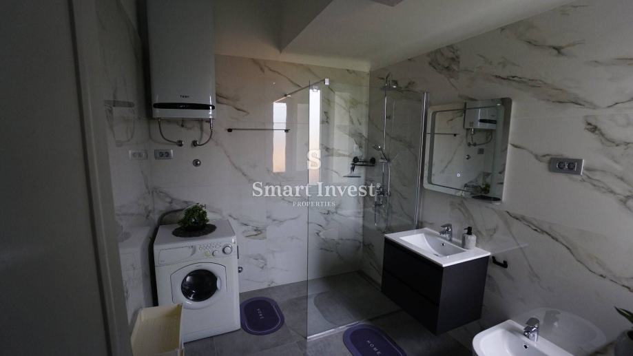 Stan površine 90 m2 se nalazi na 1. katu stare vile te sastoji od hodnika, dnevnog boravka s blagovaonicom, kuhinje, dvije spavaće sobe, balkona i velike lođe.