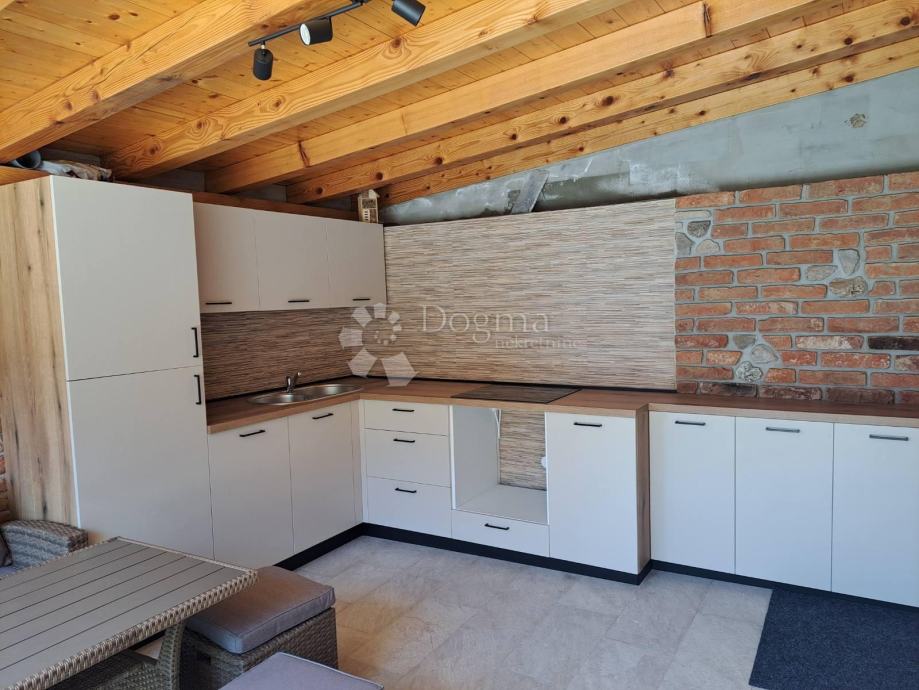 Stan se sastoji od dvije udobne spavaće sobe, dnevnog boravka povezanog s kuhinjom i blagovaonicom, kupaonice, velike terase od 40 m² s vanjskom kuhinjom – savršena za uživanje u toplim danima i večernja druženja.