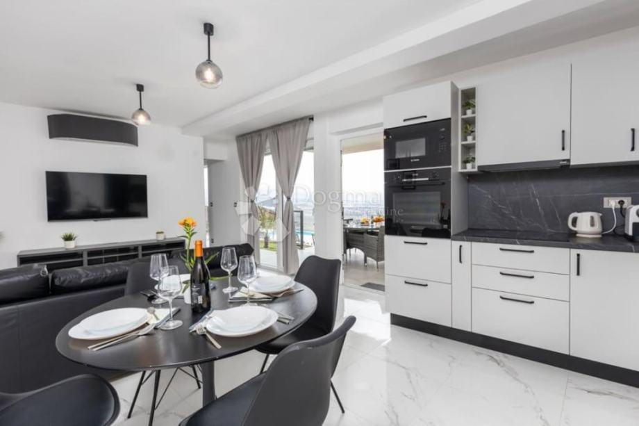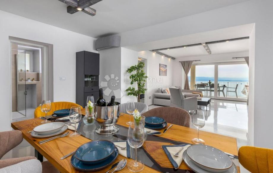 Jedan od glavnih aduta ovog stana je panoramski pogled na cijeli Kvarner, koji će vas ostaviti bez daha. S dvije prostrane terase, imat ćete dovoljno prostora za uživanje u spektakularnim zalascima sunca i pogledima na more.