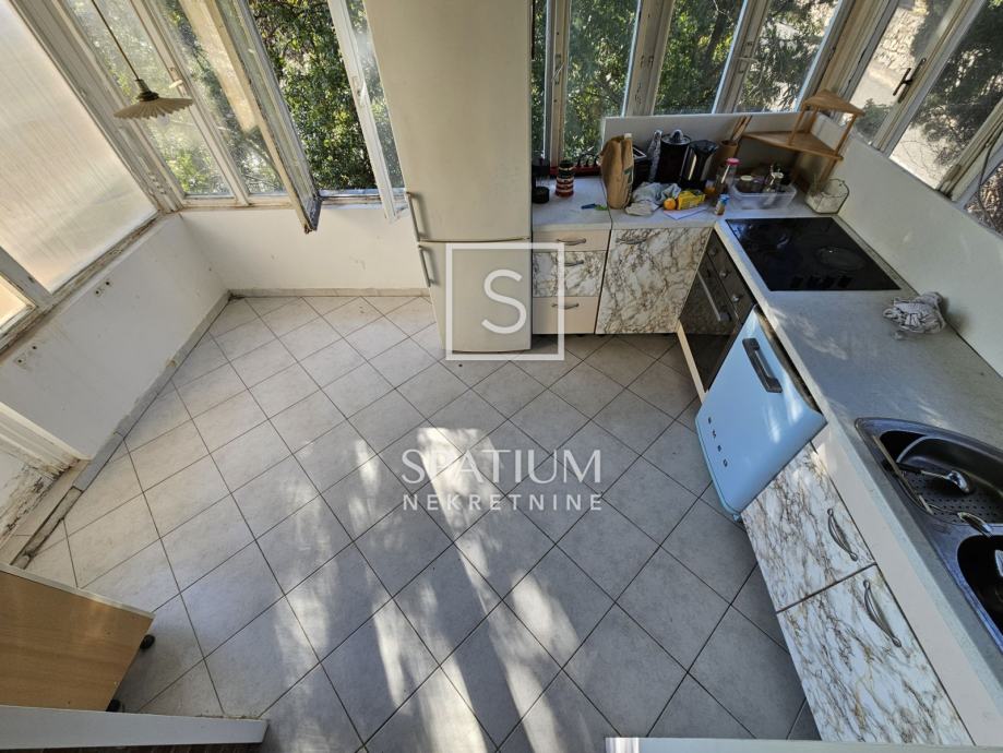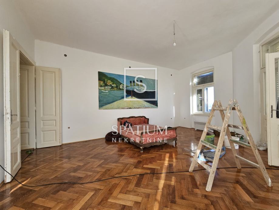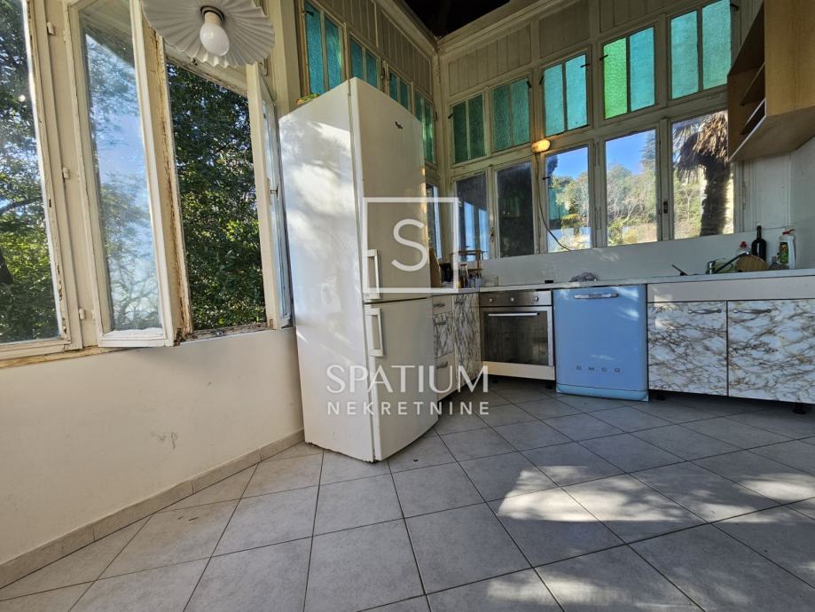 OPATIJA, u ponudu smo dobili dvoetažni stan od 114m2 prvi red do mora. Stan je smješten u austro-ugarskoj vili izgrađenoj 1902 godine. U stan se ulazi u potkrovlje gdje su smještene prostrana soba i kupaona. Unutarnjim stubištem dolazi se na donju etažu koja se sastoji od spavaće sobe, dnevnog boravka, kuhinje, kupaone i dva balkona. Pripada mu dio okućnice na korištenje. Nekretnina je za kompletnu renovaciju.