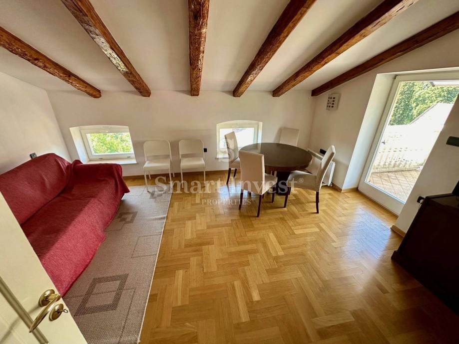 Stan površine 59.08 m2 se nalazi na drugom katu (visoko potkrovlje) manje vile sa samo 3 stambene jedinice.
