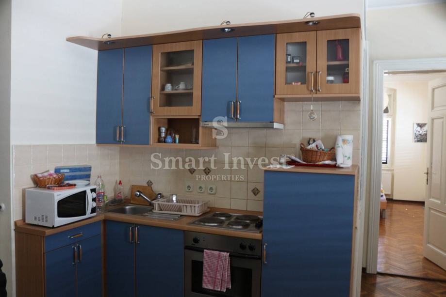 Stan je površine 112 m2, a trenutno je podijeljen u dvije stambene jedinice , 61 m2 i 51 m2, tri balkona.