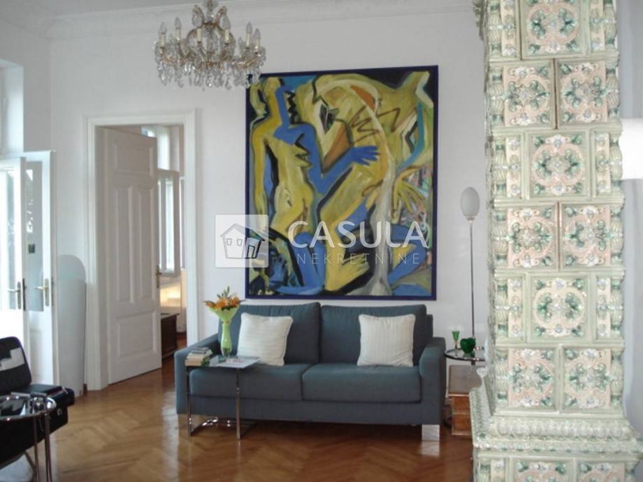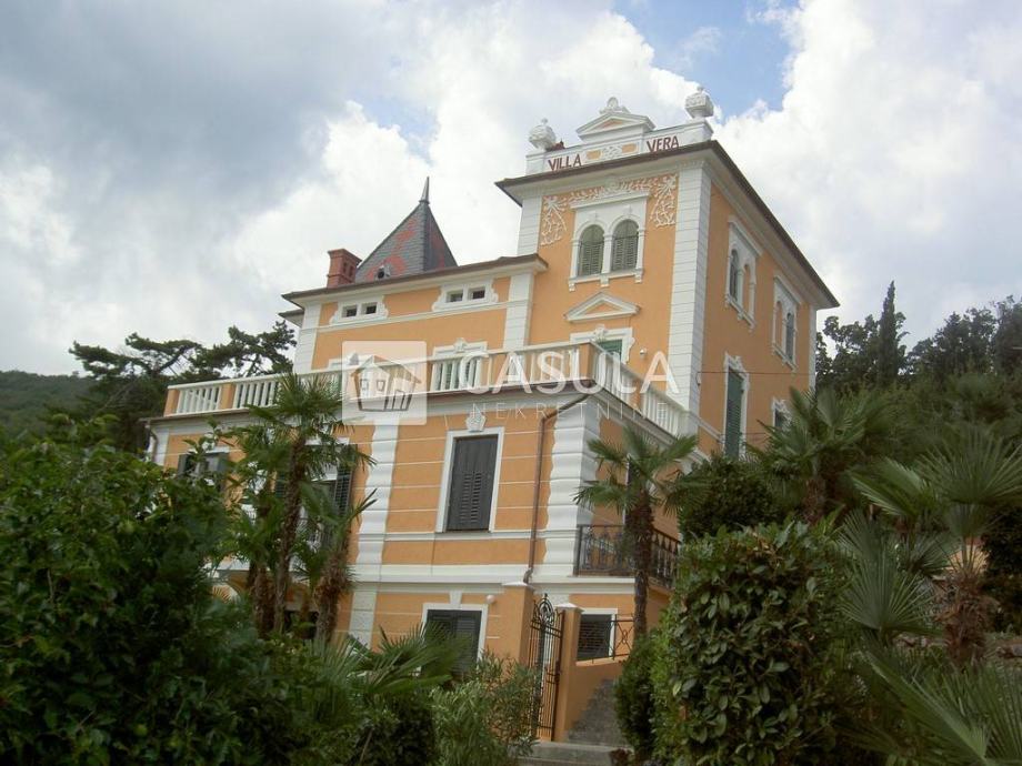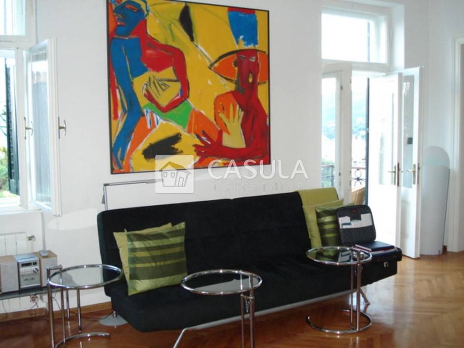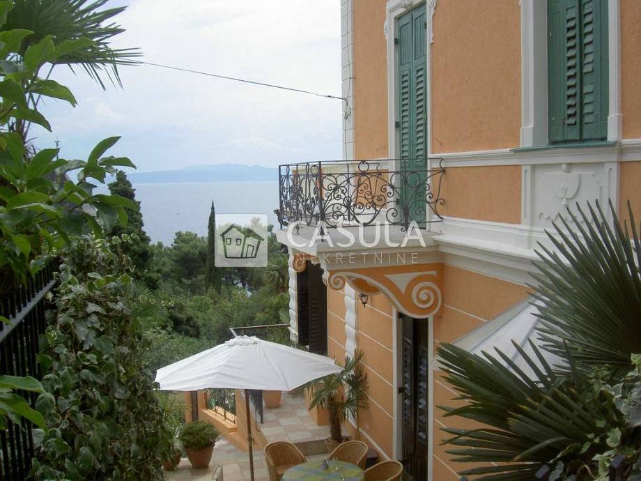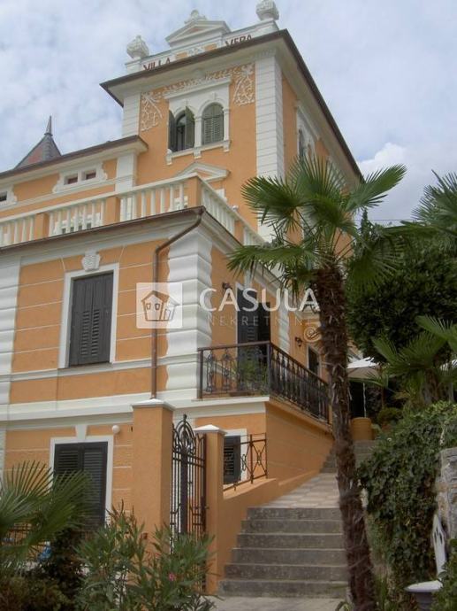 OPATIJA-Etaža uređene stare vile samo 150 m od mora. Nalazi se u visokom prizemlju. Sastoji se od kuhinje s blagovaonom, dnevnog boravka, 3 sobe, manje sobice, kupaone i wc-a te balkona. Stanu pripada i dio okućnice (cca 400 m2). Lijepo uređena i održavana vila. Parking .