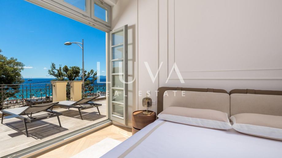 Na prodaju je luksuzan stan bruto površine 113,84 m² smješten u samom centru Opatije, u neposrednoj blizini mora i poznate šetnice Lungomare.