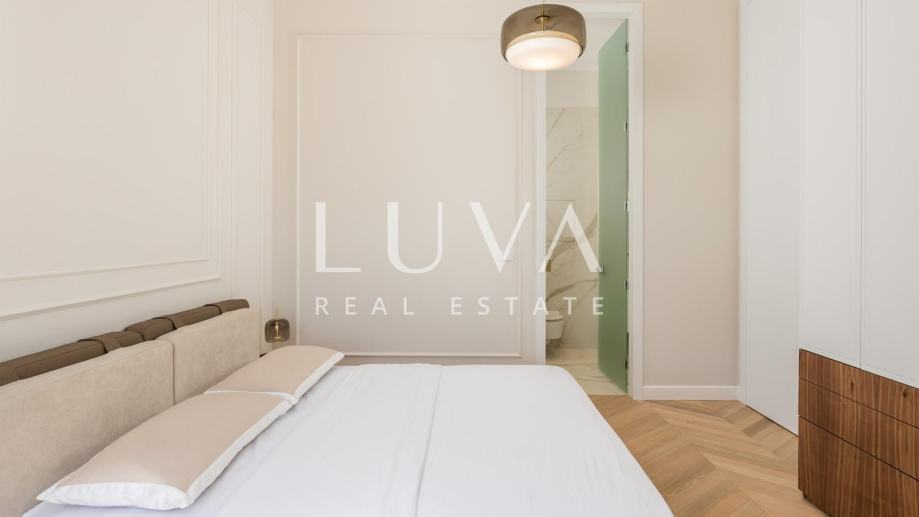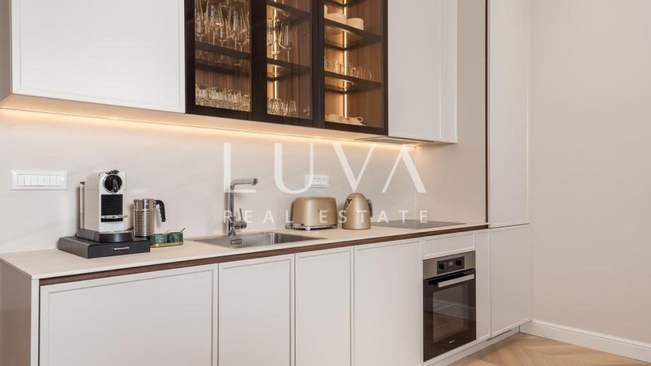Interijer stana pažljivo je osmišljen i luksuzno opremljen, s visokokvalitetnim materijalima i modernim namještajem koji pružaju udobnost, toplinu i eleganciju. Svaki detalj odražava profinjenost i besprijekoran osjećaj stila.