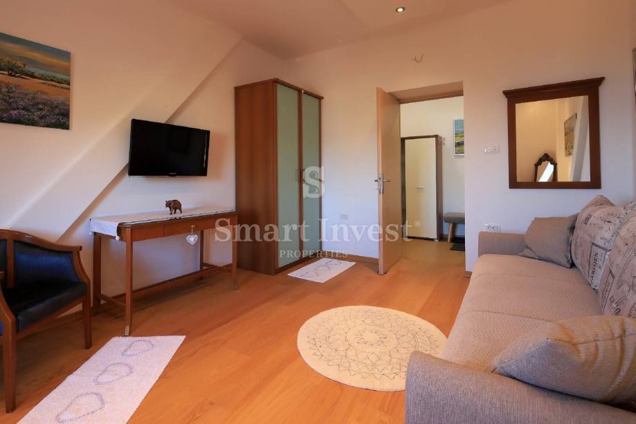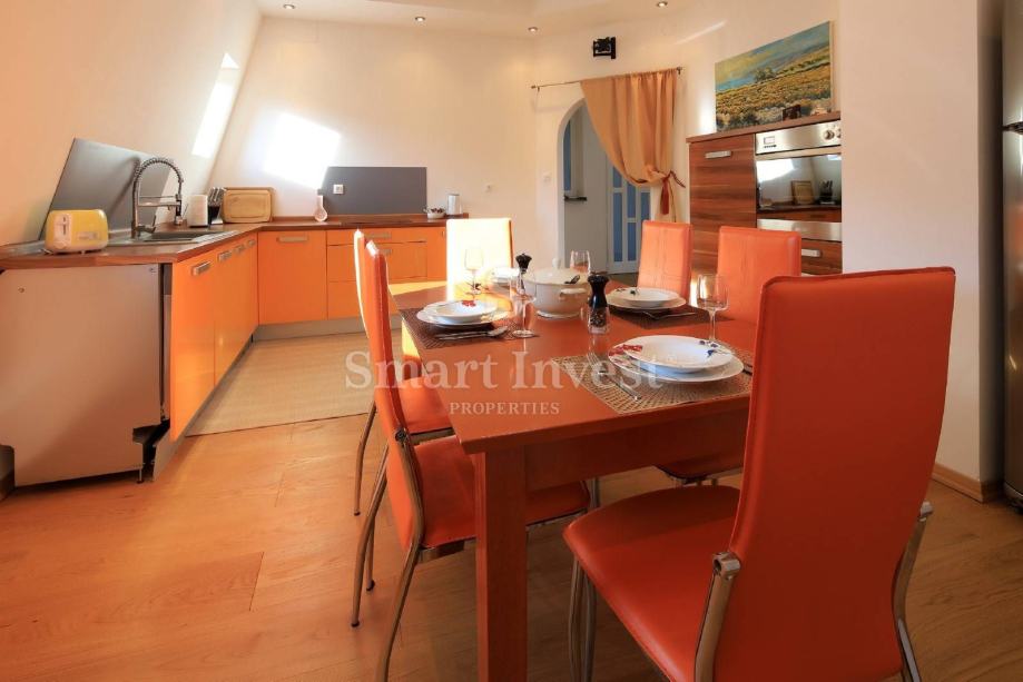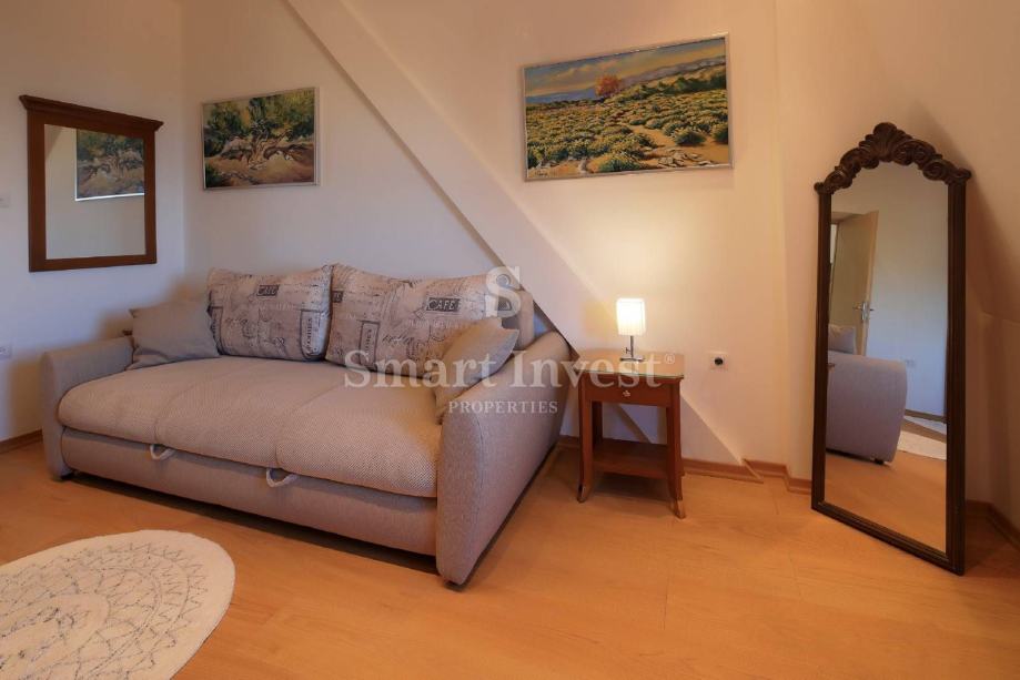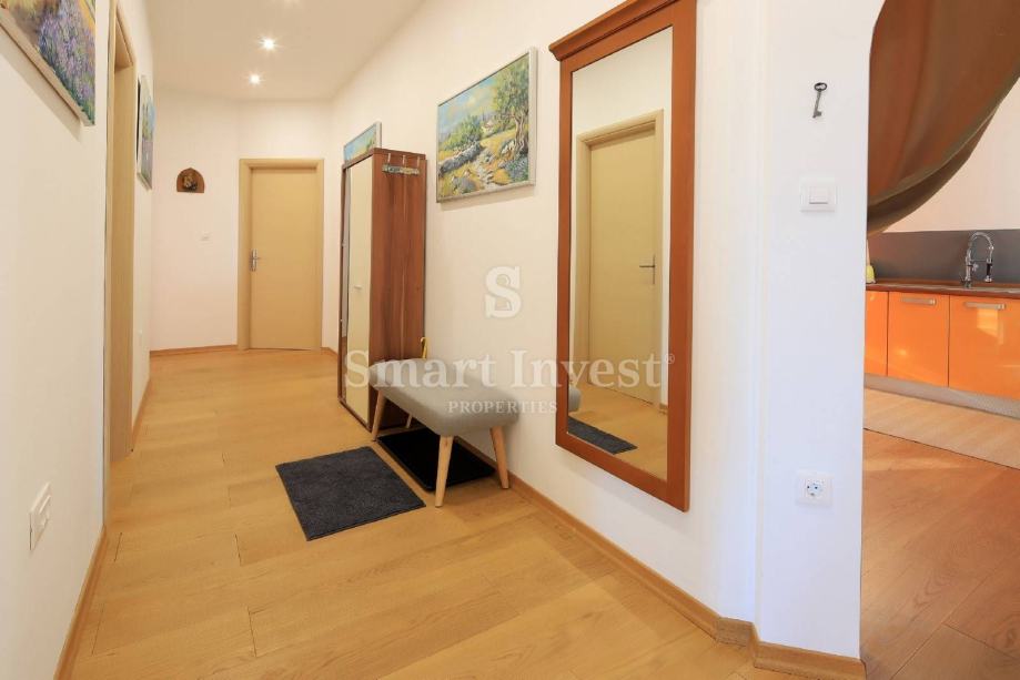 Stan je kompletno novoadaptiran s novim instalacijama struje i vode, a sastoji se od 3 spavaće sobe, dnevnog boravka, prostrane kuhinje s blagovaonicom, velike kupaonice i toaleta.