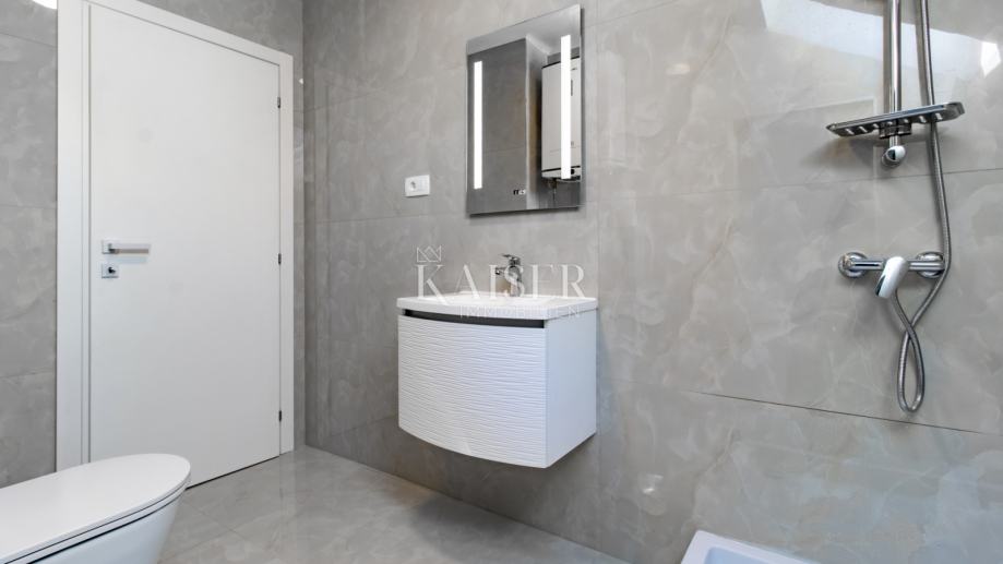 Stan je u potpunosti adaptiran 2025 godine, struja, voda, kanalizacija sve je potpuno novo. Sastoji se od tri ispavaće sobe, 2 kupaone s tušem i toaletom, hodnika, kuhinje s dnevnim boravkom na površini od 89 m2. Stan je u potpunosti namješten s svim kućanskim sadržajima (frižider, štednjak, napa, mašina za robu) i kao takav se i prodaje. Namještaj je iz Ikea. Iz master- bedrooma i dnevnog boravka imamo pogled na more.