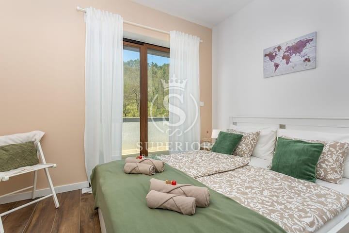 Samo deset minuta vožnje dijeli vas od Opatije i njezinih šljunčanih plaža, a svega nekoliko sati od Ljubljane, Beča i Münchena – idealno za bijeg vikendom, dugoročno stanovanje ili luksuzni turistički najam.