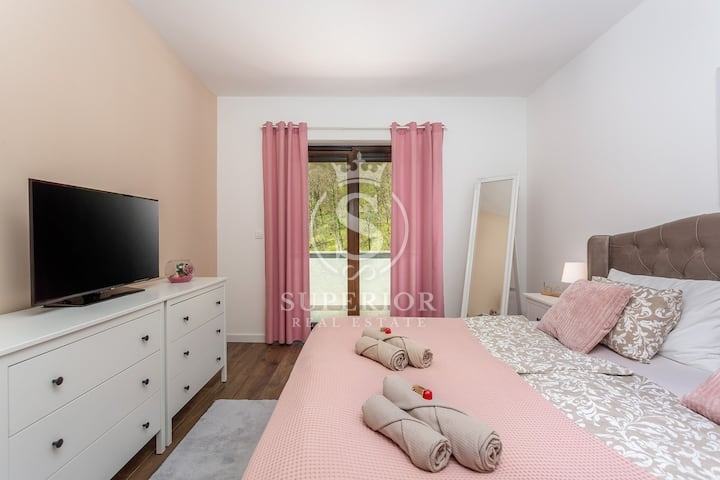 Na uzvisini iznad Opatije, gdje se zrak miješa s mirisima mora i borovine, nalazi se ovo čarobno mjesto – Veprinac. U ovom pitoresknom naselju, gdje vrijeme teče sporije, a svaki pogled donosi mir, prodaje se moderno uređeni dvoetažni stan i zaseban studio apartman u dvojnoj kući s bazenom.
