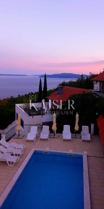 Na prvom katu su 3 stana. Dva stana su dvosobni sa dnevnim boravkom , kupatilom, predsobljem , hodnicima i kuhinjom.dva stana imaju predivan pogled na more. treći stan ima pogled na mjesto Veprinac i predivnu šumu.