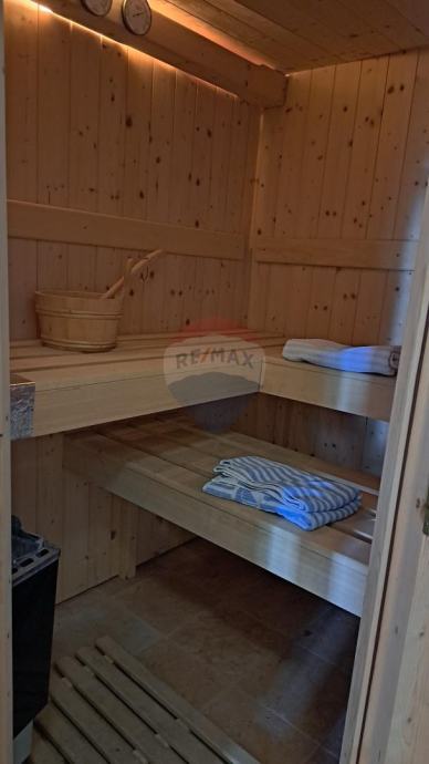 doma spremne su 5 spavačih soba,2 dnevna boravka s kuhinjom,četiri kupaone,švedska sauna s vanjskim bazenom i uređenim okolišem.