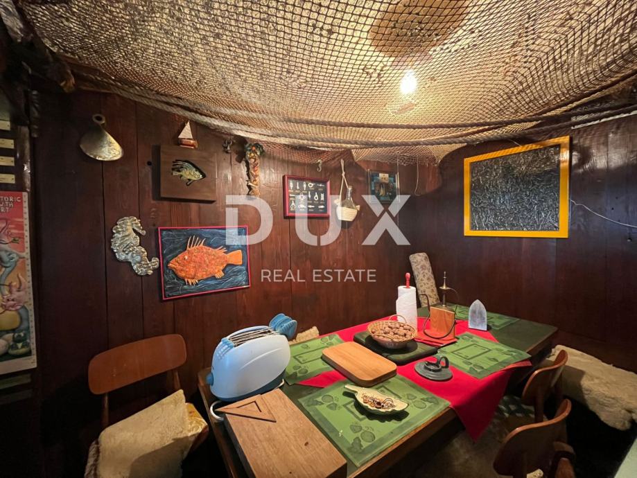 Suteren: Dvije prostorije pogodne za spavaće sobe s natkrivenim balkonom, konoba u primorskom stilu i kupaonica.
