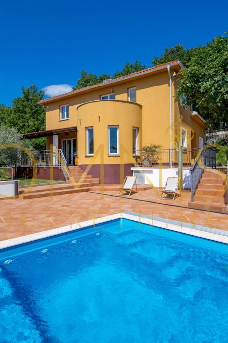 Iznajmljujemo odlično uređenu i opremljenu urbanu villu na mirnoj i tihoj lokaciji. Sastoji se od suterena, prizemlja i kata. U prizemlju se nalaze dnevni boravak s kuhinjom i blagavaonicom, spavaća soba, kupaonica, radna soba, sanitarni čvor te terasa sa izlazom na okućnicu. Na 1. katu su smještene četiri spavaće sobe, kupaonica s sanitarnim čvorom, dva spremišta te balkon sa prekrasnim pogledom na more i prirodu. U suterenu su smještena kotlovnica te sauna. Kuća ima podno grijanje u dnevnom boravku i kupaonicama te je svaka prostorija klimatizirana. Nekretnina je potpuno namještena te se kao takva i prodaje.