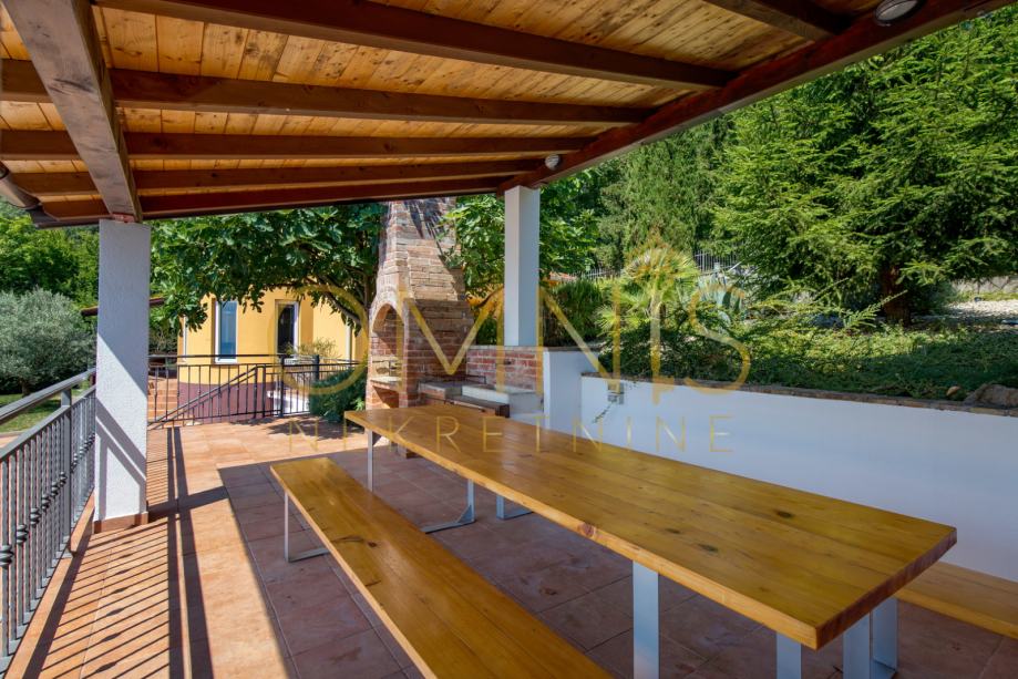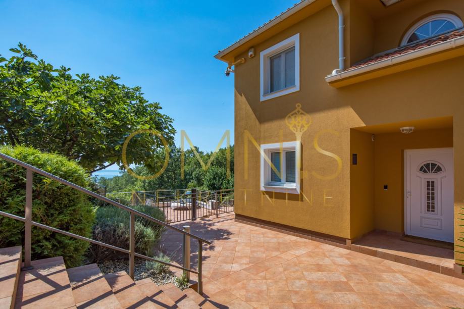 Prodajemo odlično uređenu i opremljenu urbanu villu na mirnoj i tihoj lokaciji. Sastoji se od suterena, prizemlja i kata. U prizemlju se nalaze dnevni boravak s kuhinjom i blagavaonicom, spavaća soba, kupaonica, radna soba, sanitarni čvor te terasa sa izlazom na okućnicu. Na 1. katu su smještene četiri spavaće sobe, kupaonica s sanitarnim čvorom, dva spremišta te balkon sa prekrasnim pogledom na more i prirodu. U suterenu su smještena kotlovnica te sauna. Kuća ima podno grijanje u dnevnom boravku i kupaonicama te je svaka prostorija klimatizirana. Nekretnina je potpuno namještena te se kao takva i prodaje.