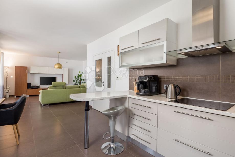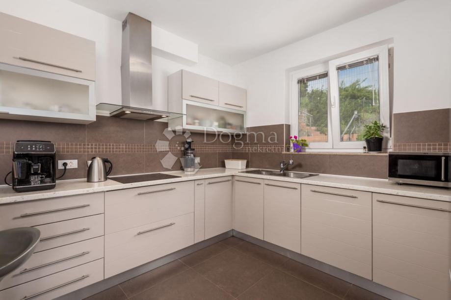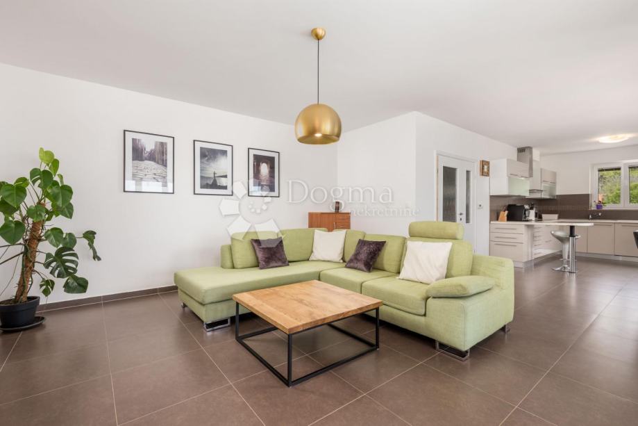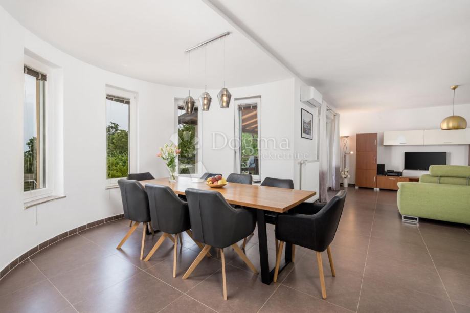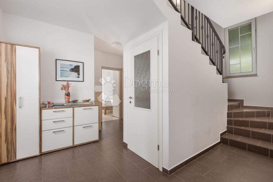 U prizemlju se nalazi dnevni boravak sa izlazom na terasu i vrt, blagovaona sa kuhinjom, spavaća soba, kupaona, toalet i radna soba. Na katu su smještene 4 spavaće sobe, kupaona, 2 spremišta i terasa dok se u suterenu nalaze sauna i kotlovnica.