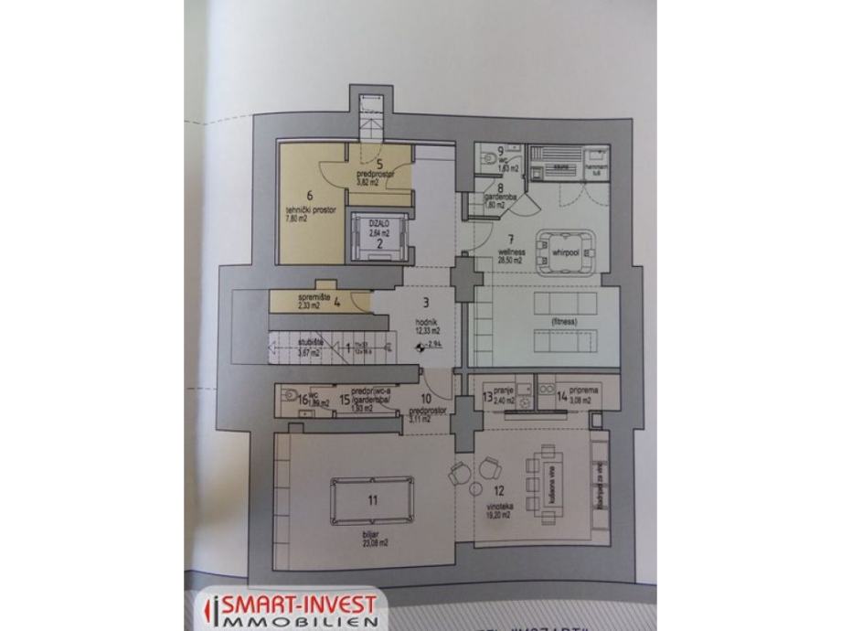 Podrum: 119,81 m2 (wellness, garderoba, wc, biljar, vinoteka, praona i ostalo)