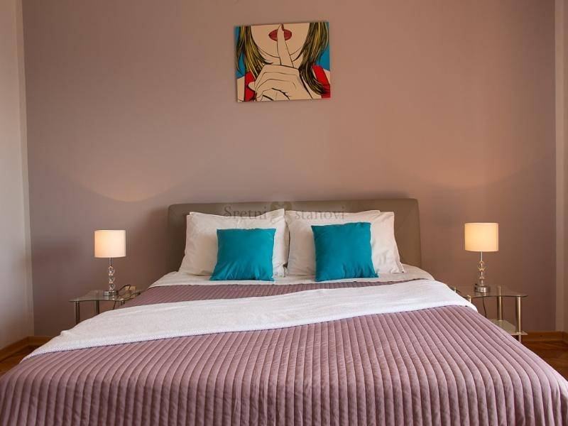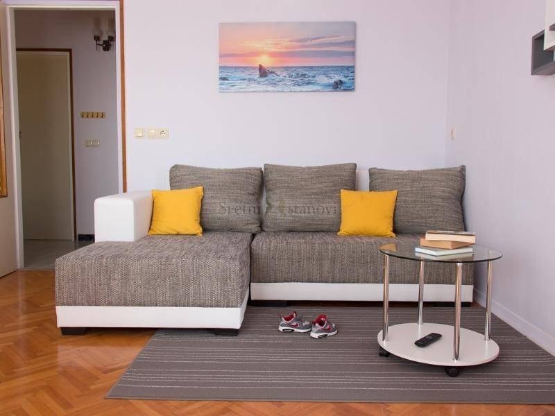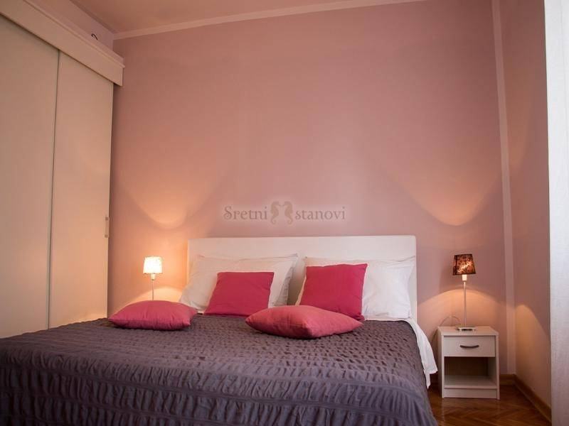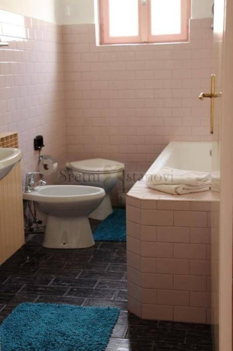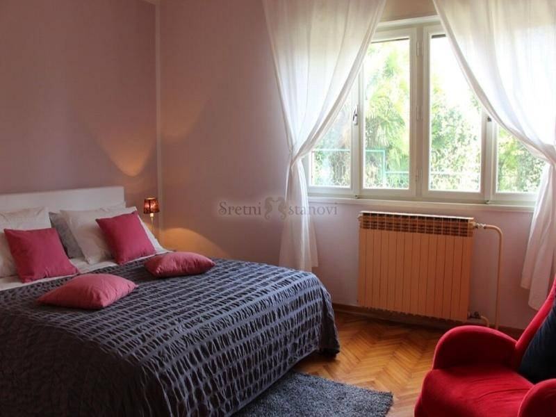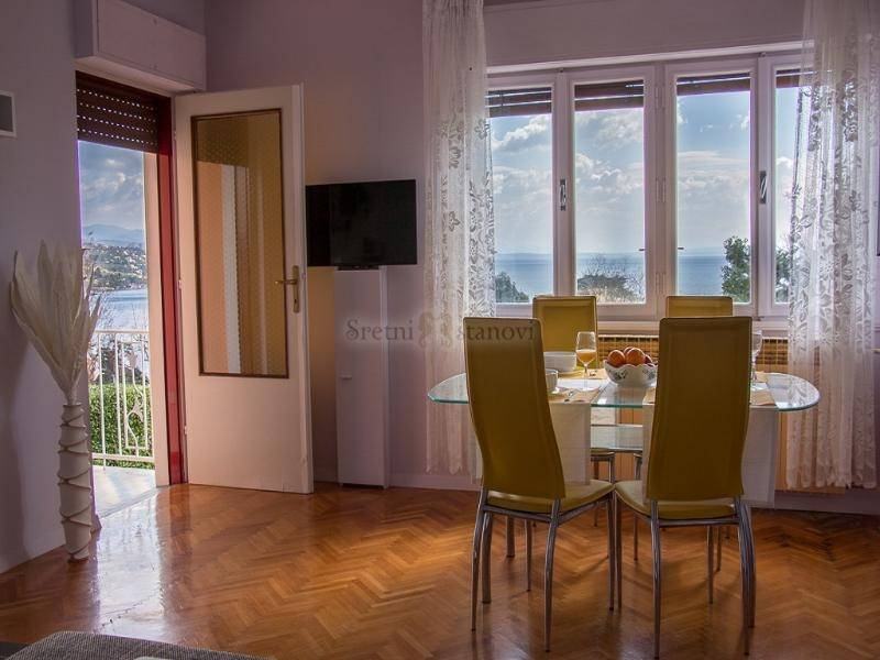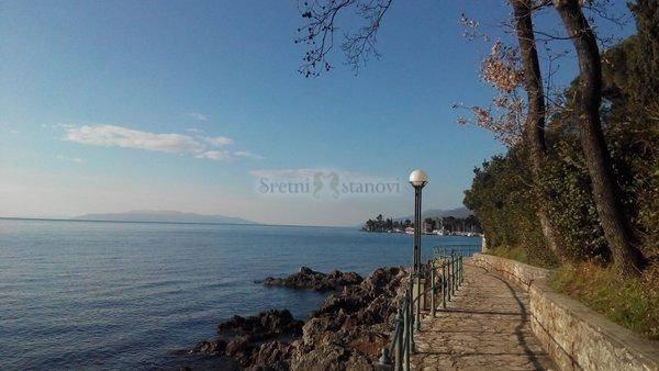 Stan za najam u Voloskom. Sastoji se od dvije spavaće sobe, kuhinje, dnevnog boravka s balkonom, kupaone, male sobice. Stanu pripada i terasa s lijepim pogledom, u ugodnom okruženju. Grijanje centralno na lož ulje. Stan se nalazi u blizini svih sadržaja i plaže. Parkirna mjesta u okućnici. Iznajmluje se od 1.9. do 1.6