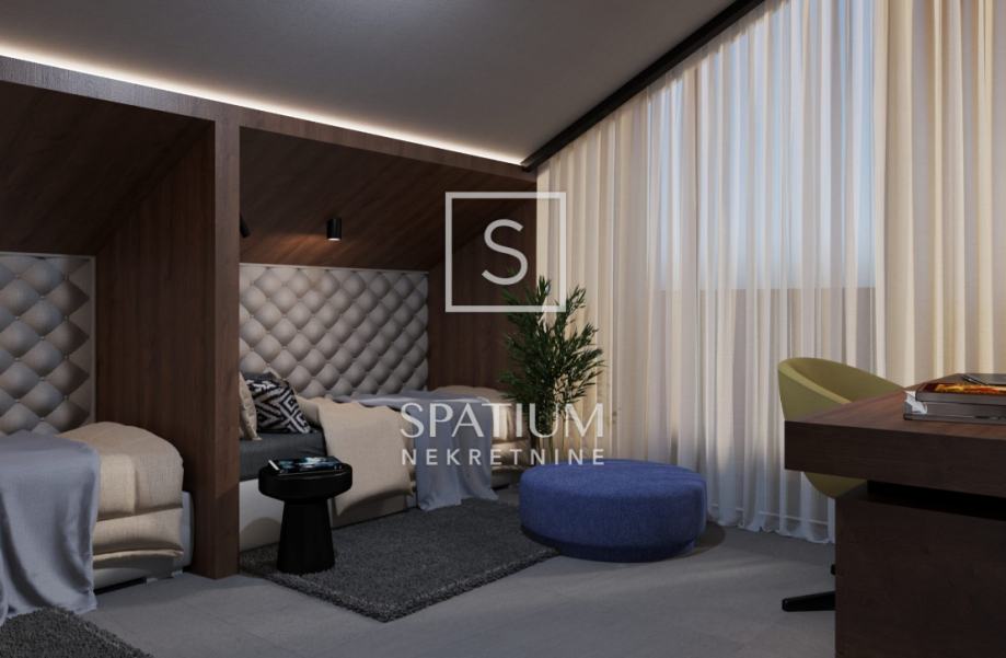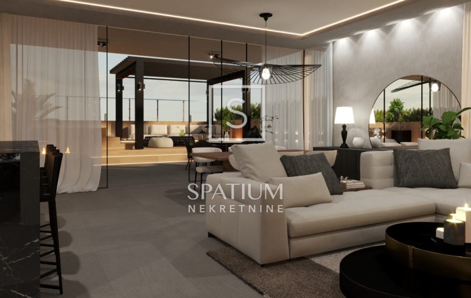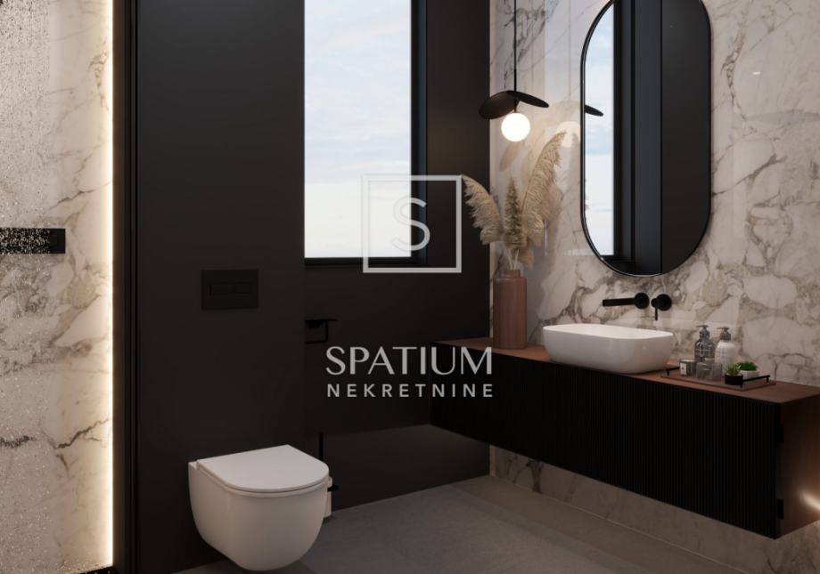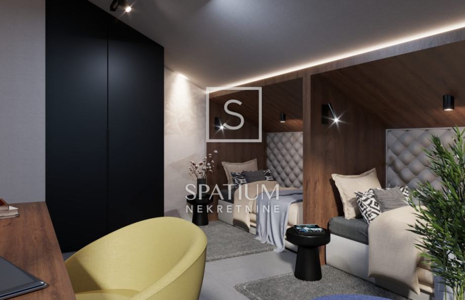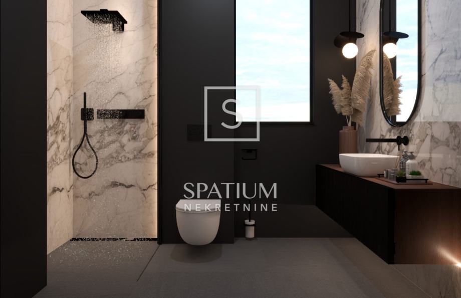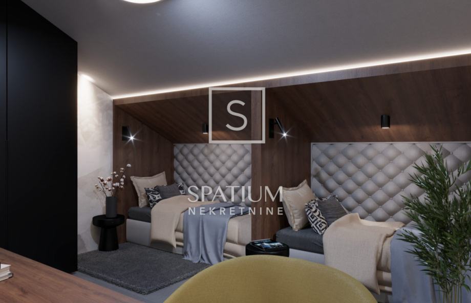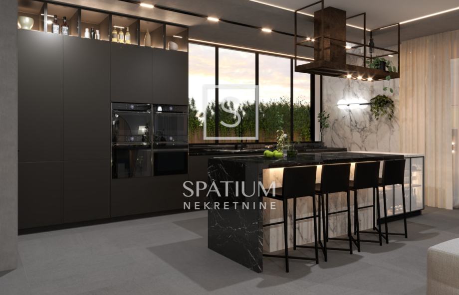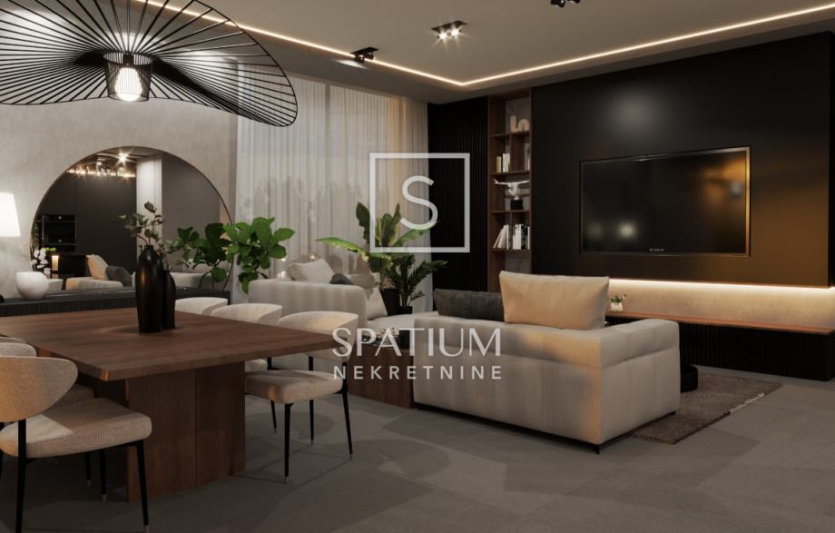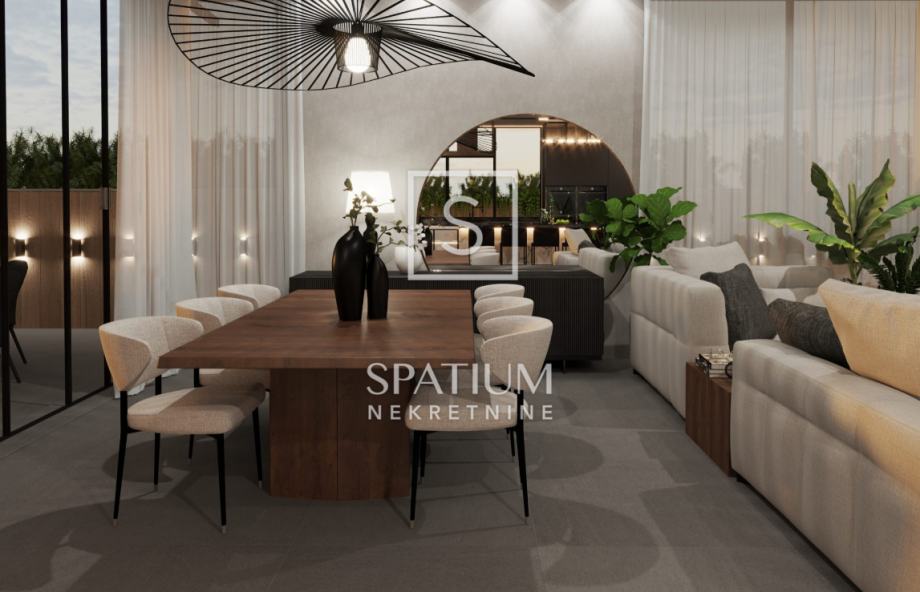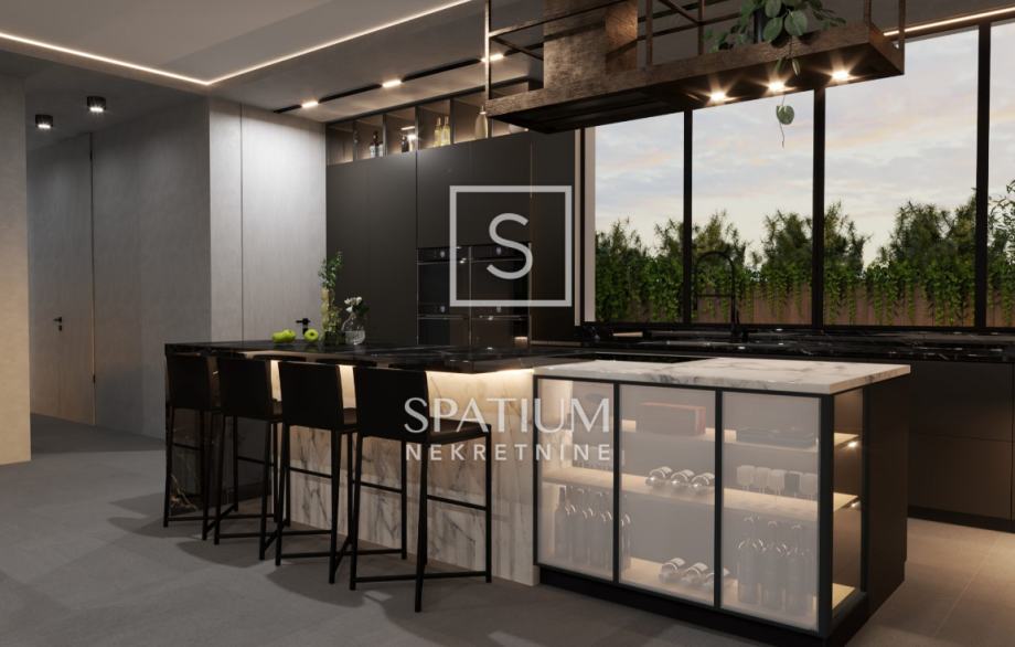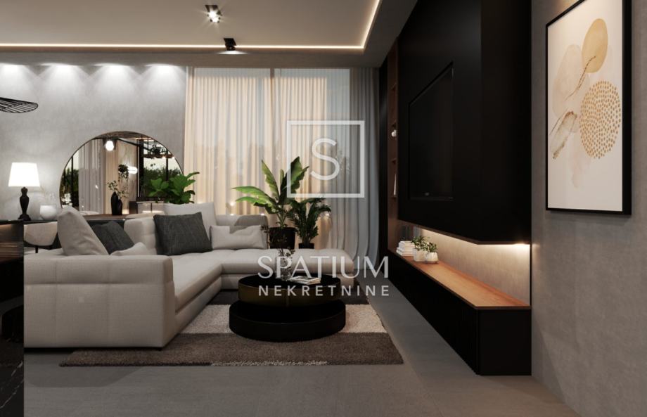 Ova moderna novogradnja ističe se izvrsnim rasporedom prostorija kao i visokokvalitetnom gradnjom (ALU stolarija, dizalice topline, podne obloge 1. klase, video nadzor....)