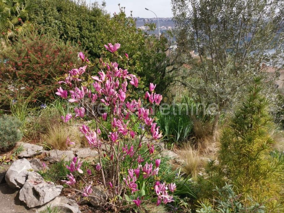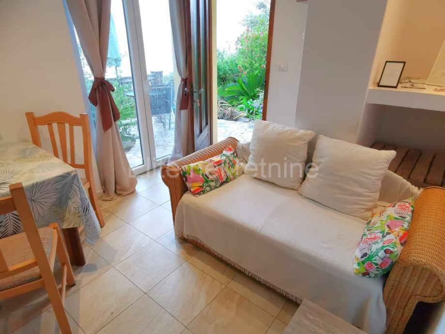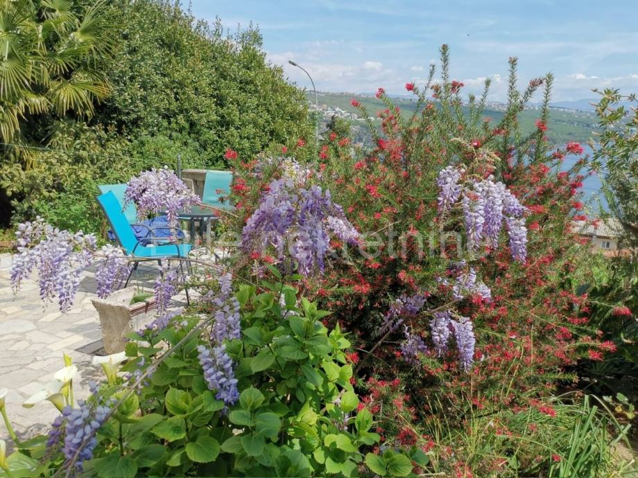Stanu također pripada terasa u vrtu sa prekrasnim mediteranskim, biljem i fantastičnim pogledom. Dnevni dio stana neposredno je povezan sa terasom. Korisnicima stana osigurano je i parkirno mjesto.
