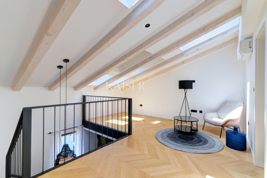 Na drugom katu, odnosno na galeriji, nalazi se dodatna prostrana soba, atraktivna galerija koja nudi mogućnost različitog korištenja (radni prostor, dnevni boravak, kutak za opuštanje) te još jedna elegantna kupaonica. Ovaj raspored čini stan idealnim za obitelji, ali i za parove koji žele više prostora i multifunkcionalnost.