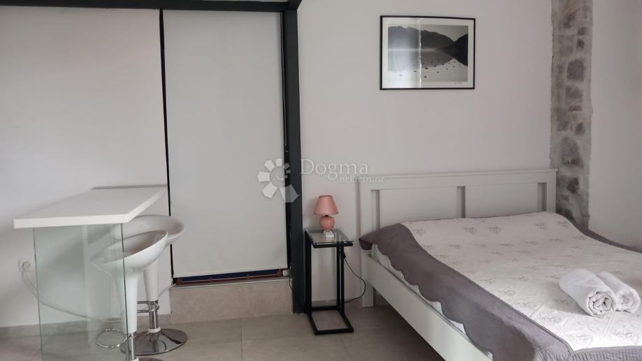 Dvije odvojene jedinice, svaka s posebnim ulazom: Stan se sastoji od dva dijela, jedan studio apartman kategoriziran s 4* površine 20 m2 i drugi dio to dvosobni stan površine 67 m2. Ova konfiguracija pruža fleksibilnost jer se može koristiti na nekoliko načina - kao dvije odvojene jedinice za turistički najam i stambeni prostor, ili kao jedna cjelovita stambena jedinica. Studio ima kuhinju, kupaonicu s tušem, bračni krevet i galeriju od kovanog željeza gdje se nalazi još jedan bračni krevet.