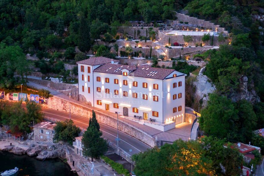 Luksuzni resort sa ukupno 15 vrhunski opremljenih stanova/apartmana smješten je na iznimnoj lokaciji 1. red do mora, s direktnim izlazom na plažu. Teritorij resorta koji se prostire na 3.149 m2 prekrasno je uređen s terasastim vrtovima, zajedničkim bazenom od 60 m2 i sunčalištem s predivnim panoramskim pogledom na cijeli Kvarnerski zaljev. Svakom apartmanu pripada privatni hortikulturno uređeni vrt.