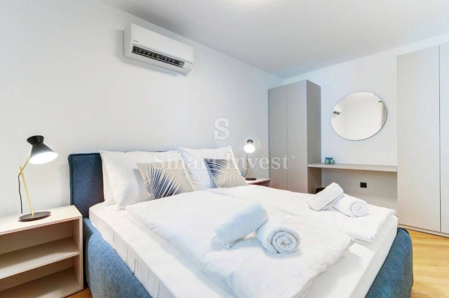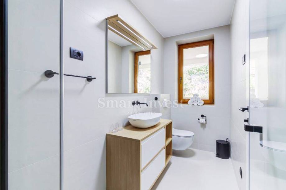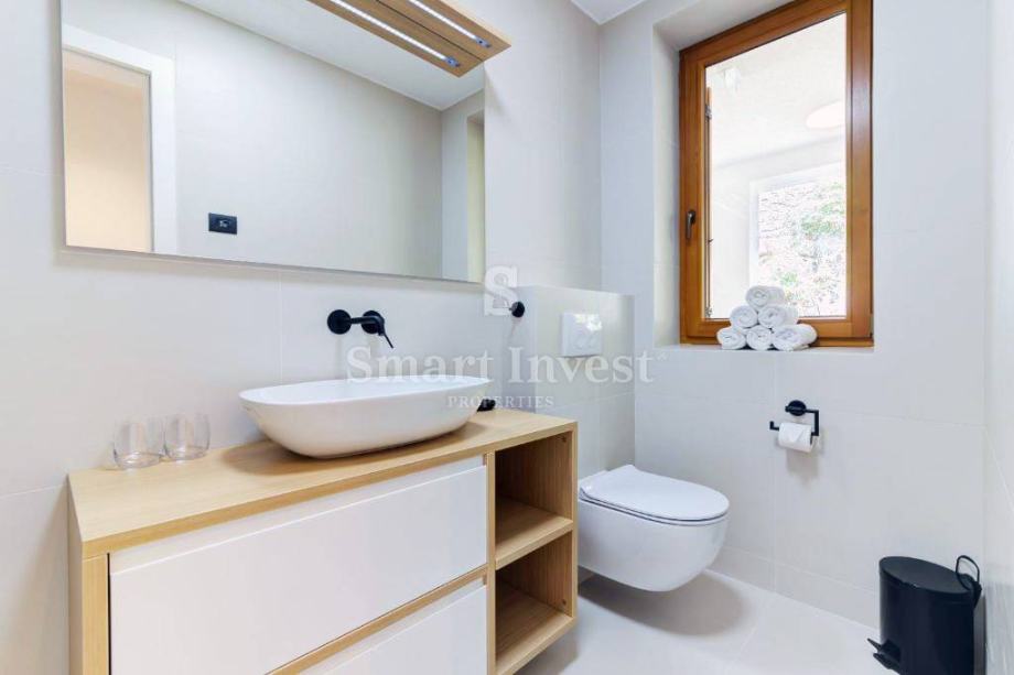 Apartmanu pripada garažno parkirno mjesto i hortikulturno uređena okućnica površine 99 m2.