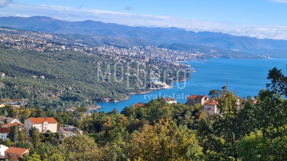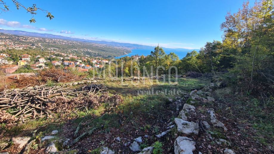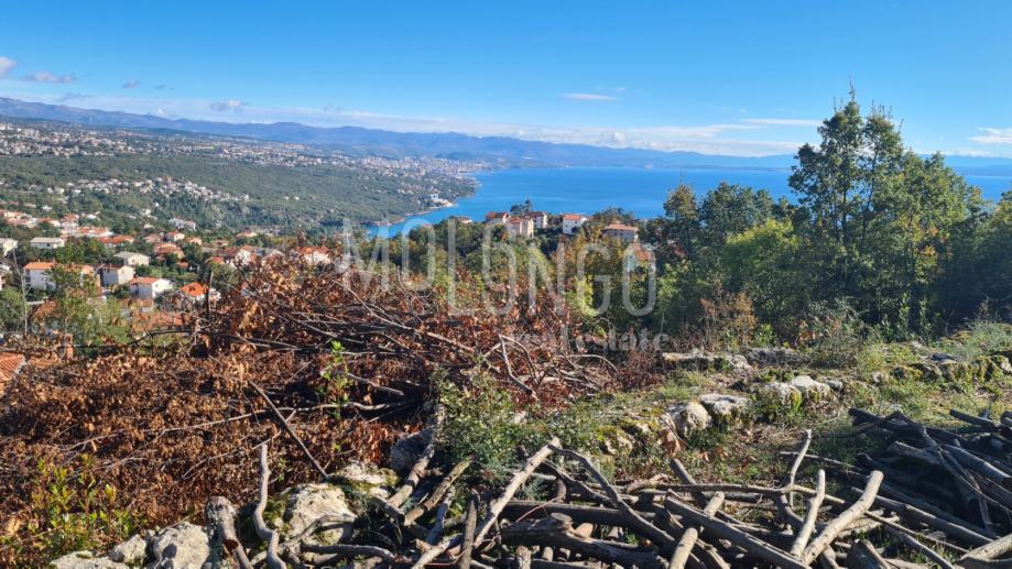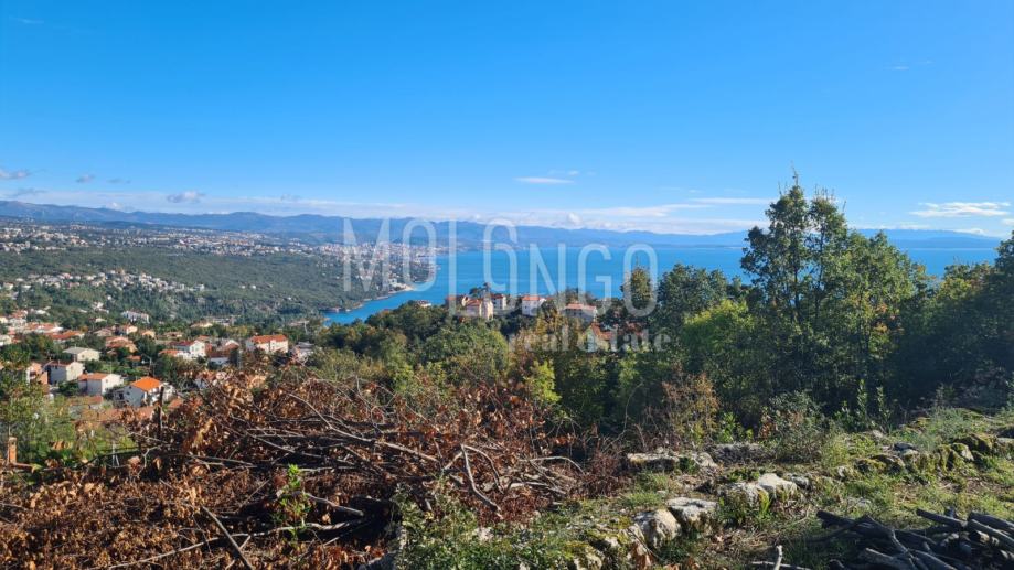 Građevinsko zemljište u zaleđu Opatije. Tri kilometra cestom do centra Opatije. Prekrasan pogled. Izuzetno mirna i lijepa lokacija za izgradnju jednog ili dva objekta.