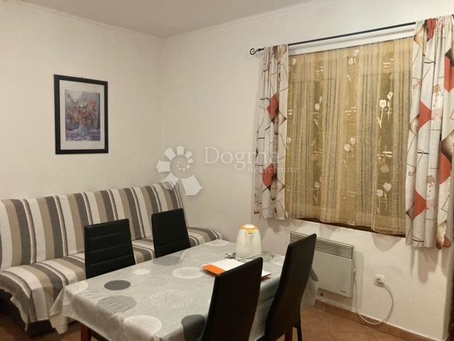 Iznajmljuje se stan u prizemlju privatne kuće. U ljetnim mjesecima u turističkom najmu. Sastoji se od kuhinje s dnevnim boravkom, sobe, kupaone, natkrivene terase i parkirnog mjesta, što je rijetkost na ovoj lokaciji. U stanu se grije na električne radijatore. Sa terase, na kojoj možete provesti svaki sunčan dan,pruža se prekrasan pogled na more. Ne propustite ovu priliku!