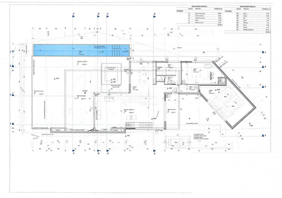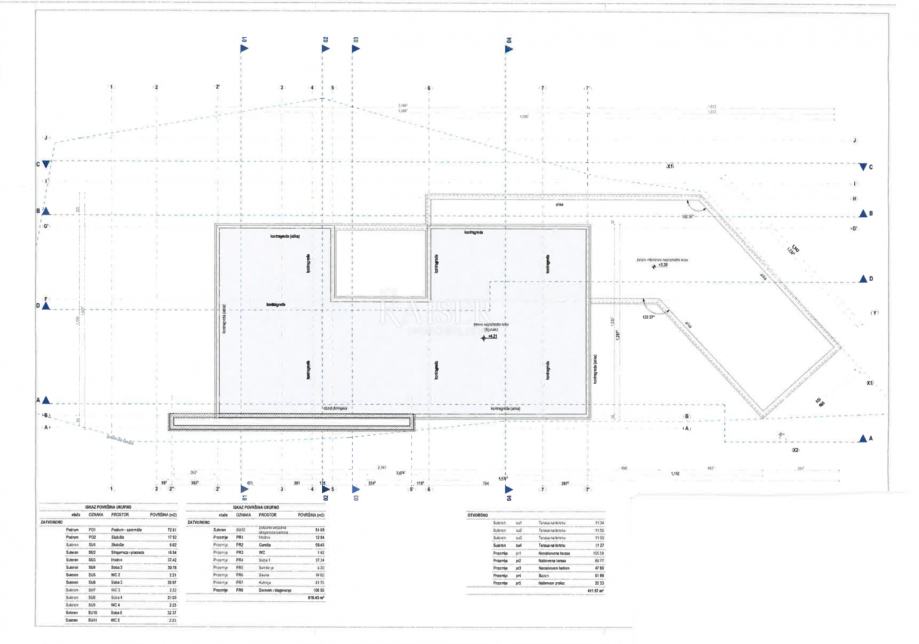 Glavni projekt obuhvaća vilu s ukupno 618 m2 neto stambenog prostora i dodatnih 411 m2 vanjskog prostora, uključujući sunčališta, terase i natkrivene terase.