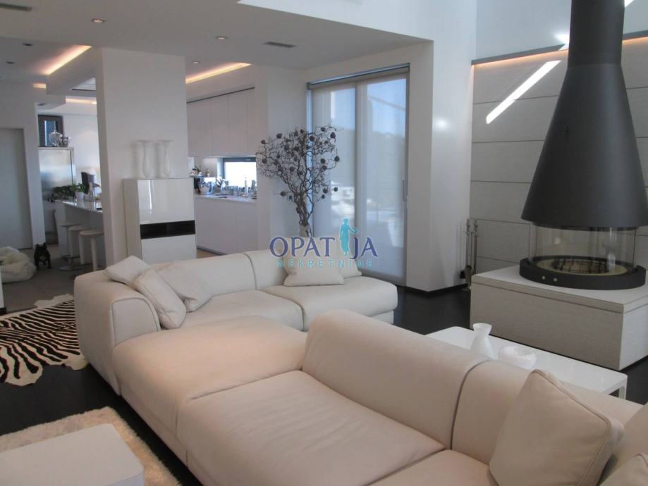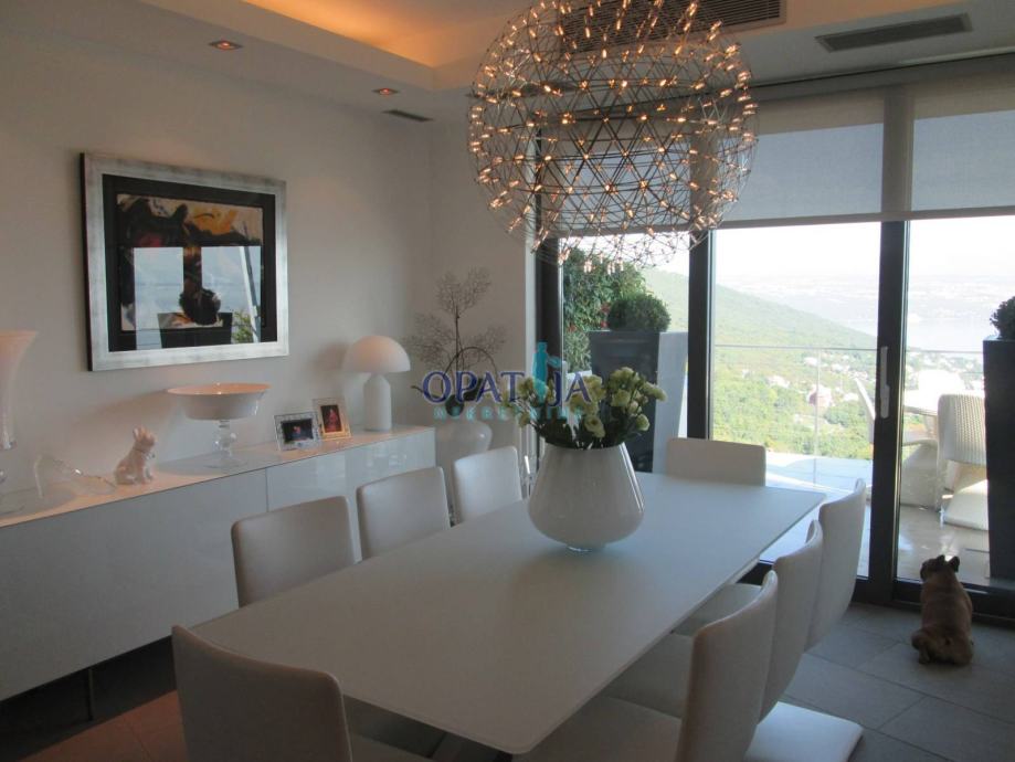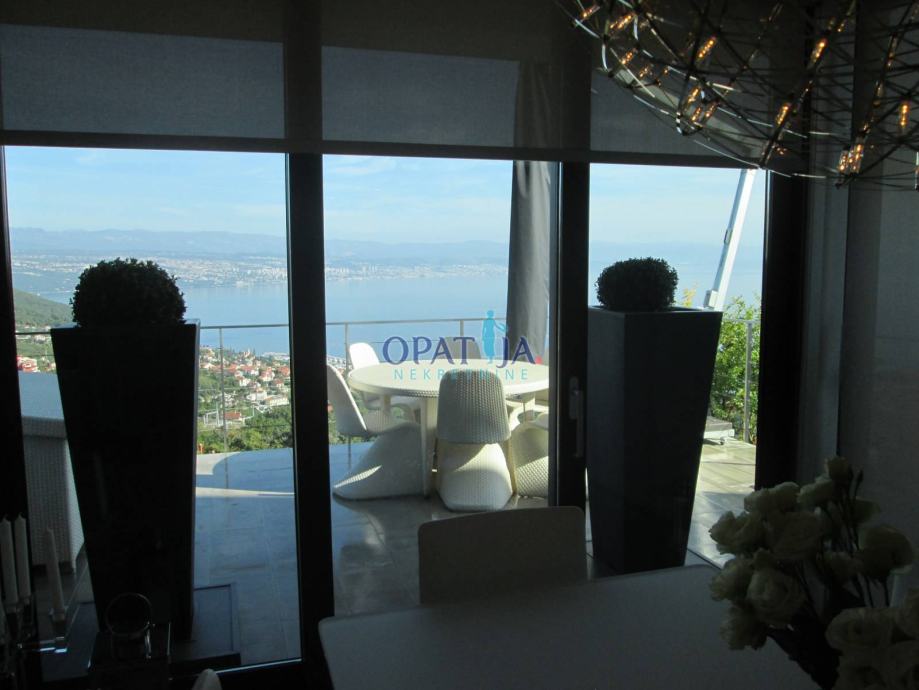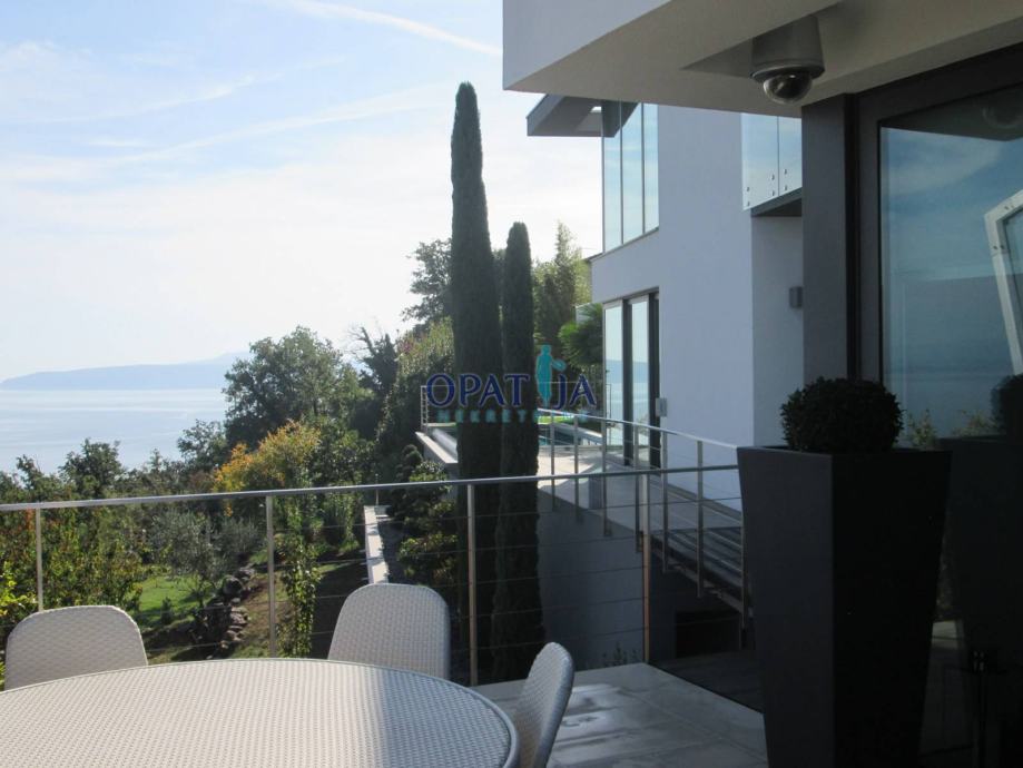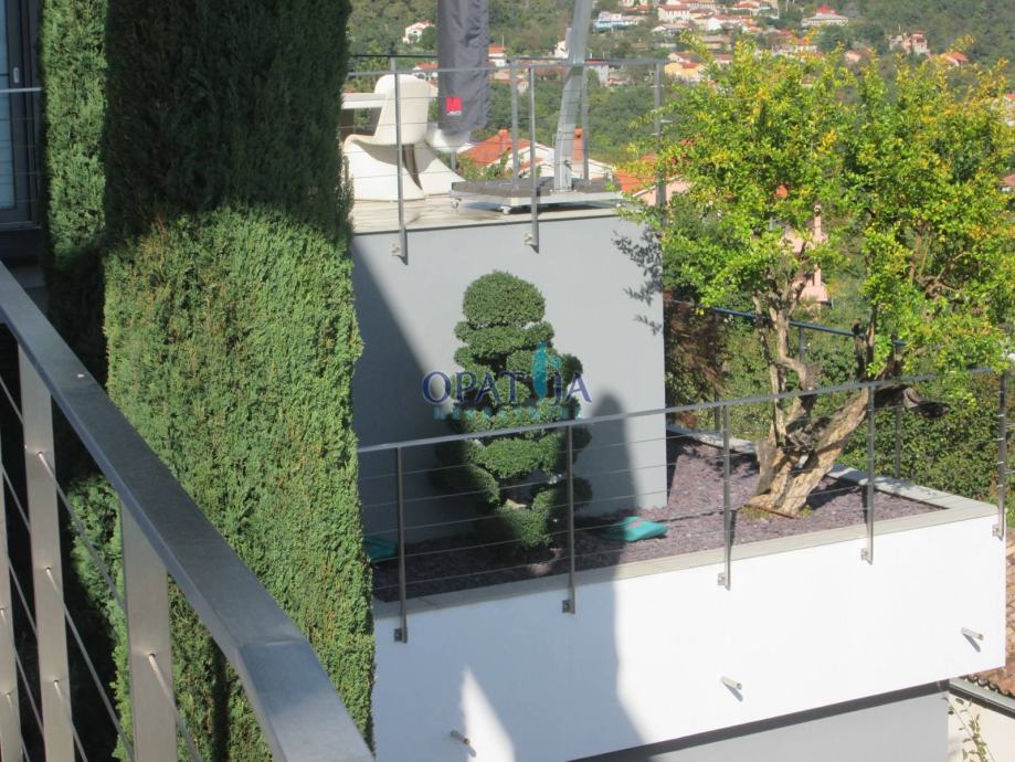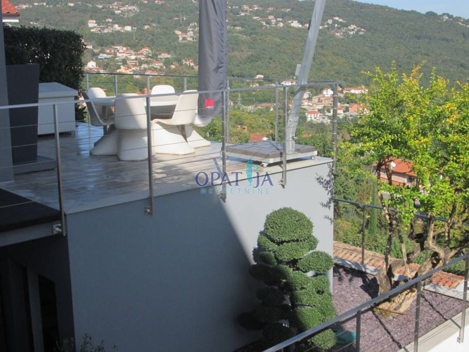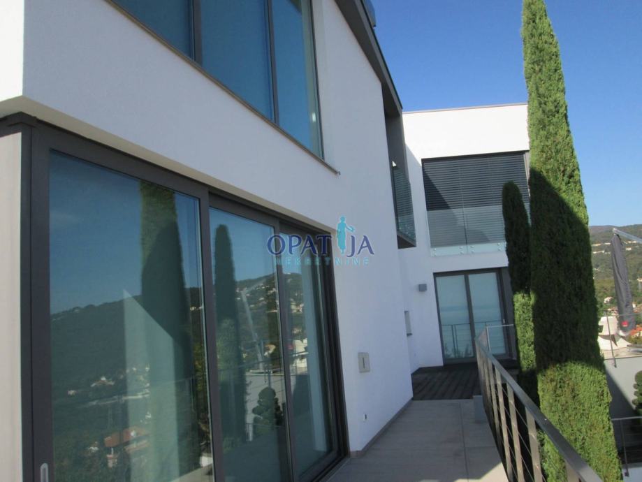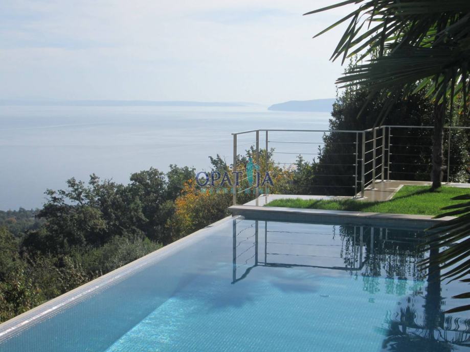 Opatijska rivijera, iznad Lovrana, moderna vila izgrađena 2009 g. na ograđenom kaskadnom terenu od 660 m s otvorenim pogledom na cijeli Kvarner.
