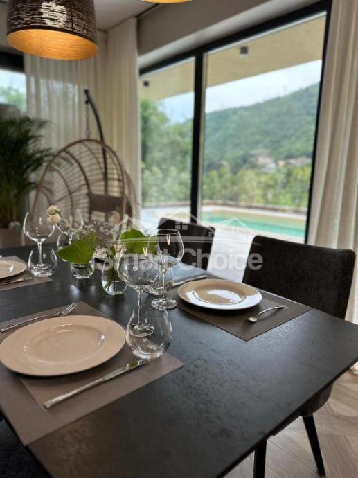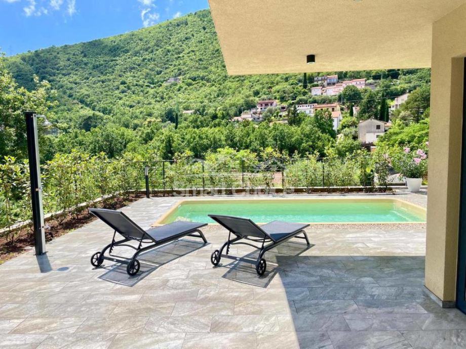 Opatija (Mošćenička draga) - ekskluzivna vila s bazenom na prekrasnoj i mirnoj lokaciji blizu svih sadržaja i 800 m do prve plaže. Vila je novosagrađena i nekorištena. Nudi 4 komforne spavaće sobe s kupaonama na katu, i veliki open space dnevni boravak sa kuhinjom i blagovaonom s izlazima na terasu i bazen u prizemlju. Vani je u funkciji roštilj i prekrasna ljetna kuhinja. Vila se iznajmljuje na dugoročno. Petra 098429024